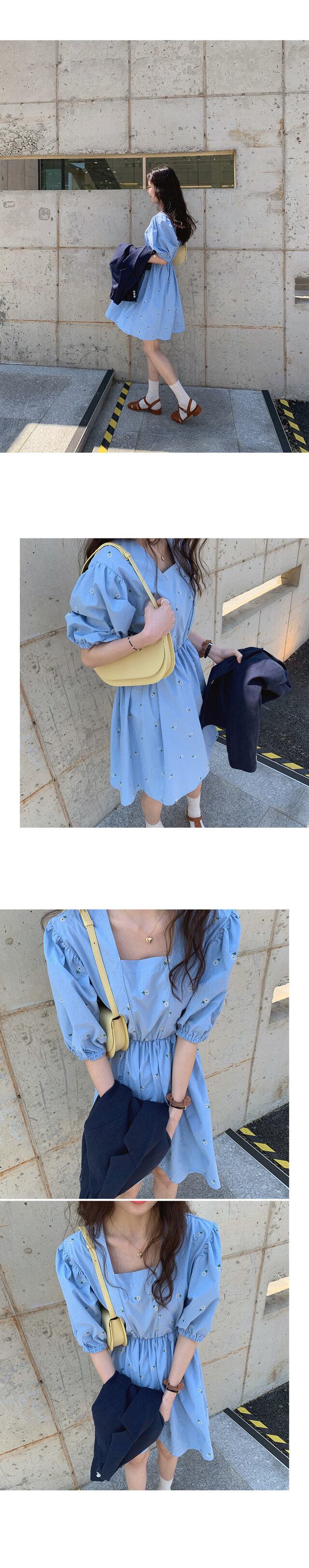 南シックな甘い小さな新鮮な刺繡花柄スクエアネックライン薄いしわウエストパフスリーブドレススカート女性 韓国婦人7329251362