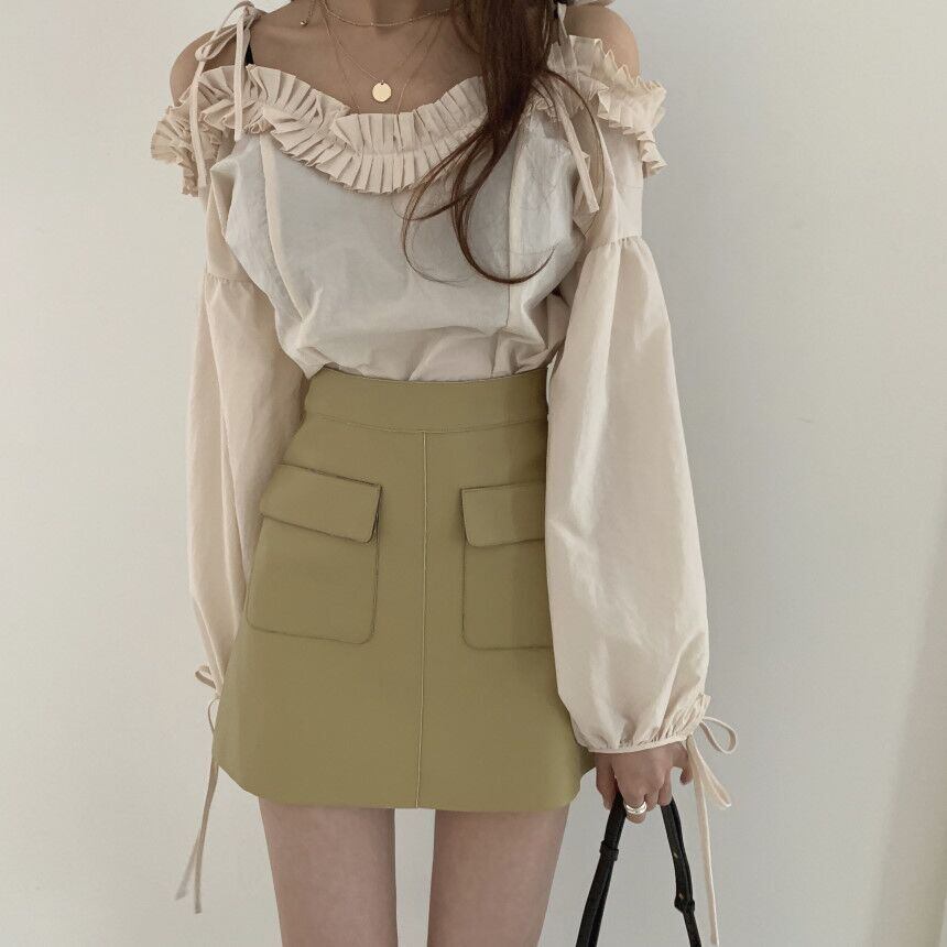 ゴーストホーススタイルのシックなレトロスウィートエインエアプレッシャープリーツカラーオールマッチシャツ+ヒップAラインスカート 韓国婦人19416735801