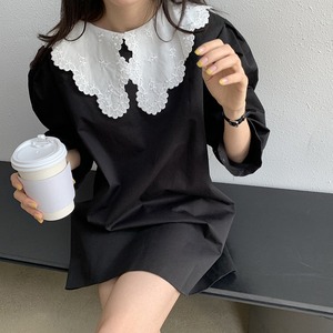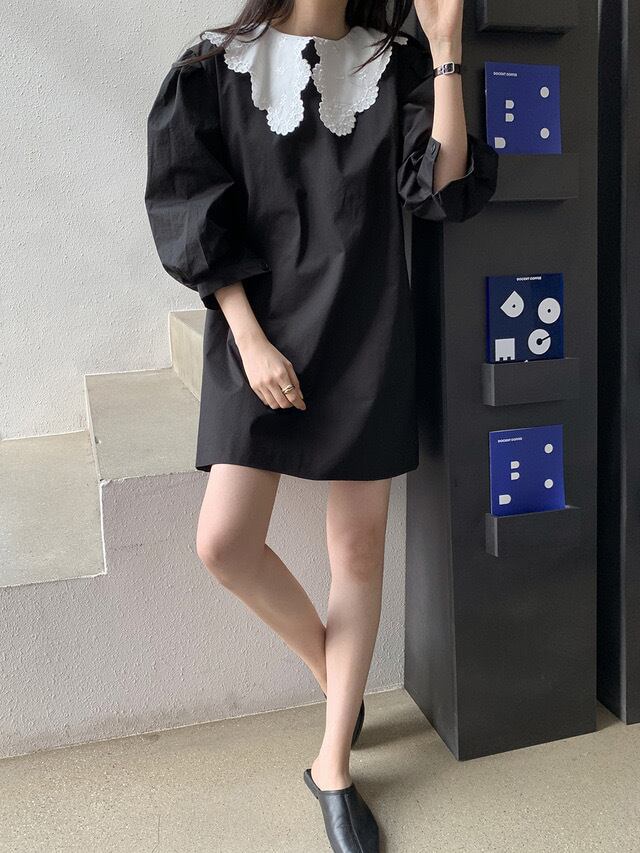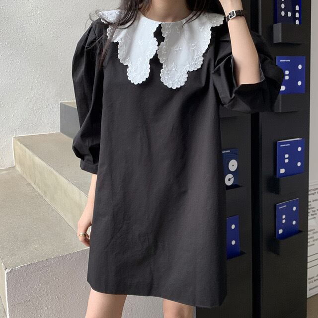 小さな黒のショートスカート女性2020年夏の新しい気質カラーマッチング人形の襟ルーズパフスリーブドレストレンド 韓国婦人2209510670