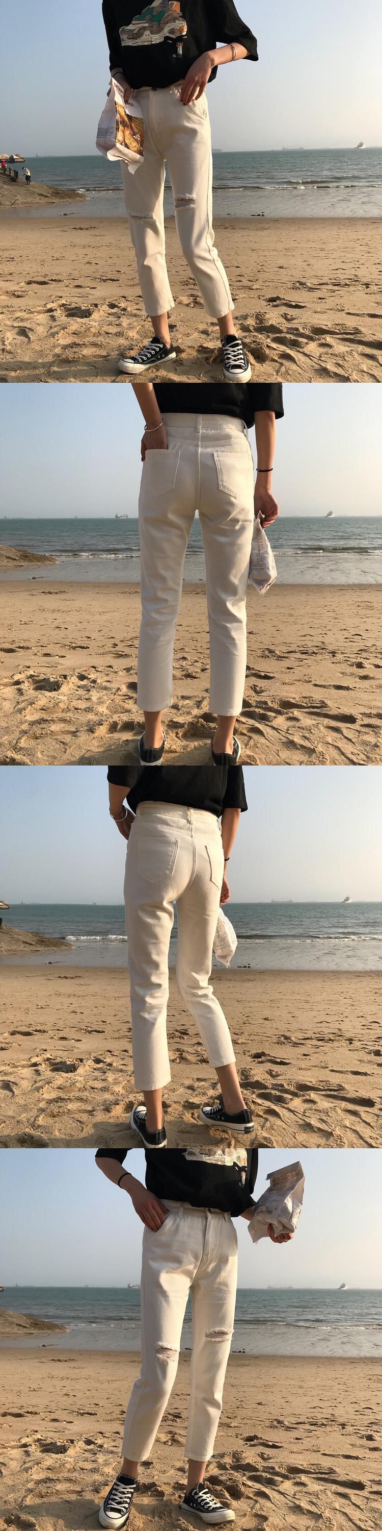 サマージーンズ ハイウェストウェストルーズホワイトパンツ 夏物 韓国婦人84898646088