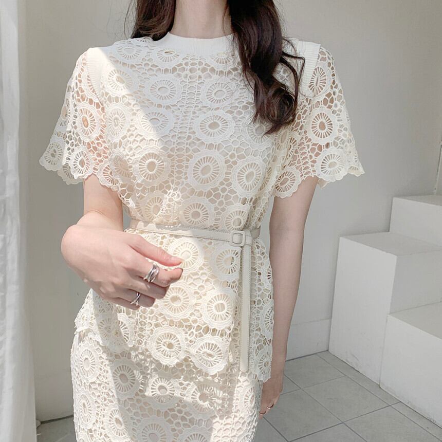 サウスインスリムホローレースツーピーススカートラップヒップスカートドレスライトマチュアウィンドスーツサマー 韓国婦人68106676014