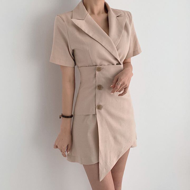 リネンスモールスーツドレスレディース2020春夏新ミドル丈気質レディースファン半袖コットン&リネンドレス 韓国婦人70216973557
