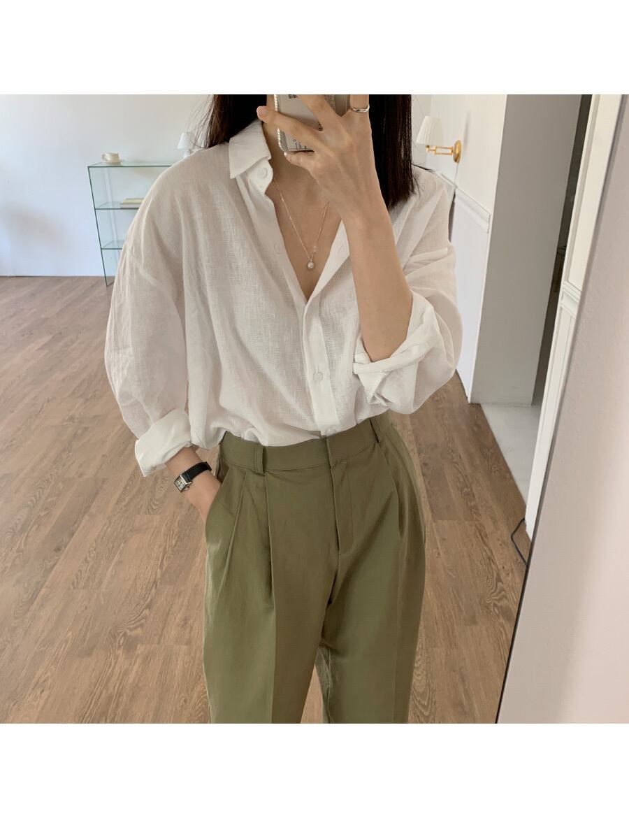 シックなワイルドベーシックキャンディーカラーラペルシングルブレストルーズカジュアル薄手の長袖日焼け止めシャツ女性 韓国婦人90606078282
