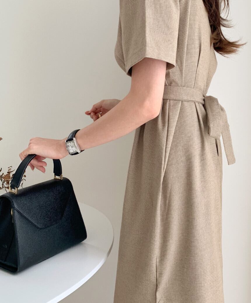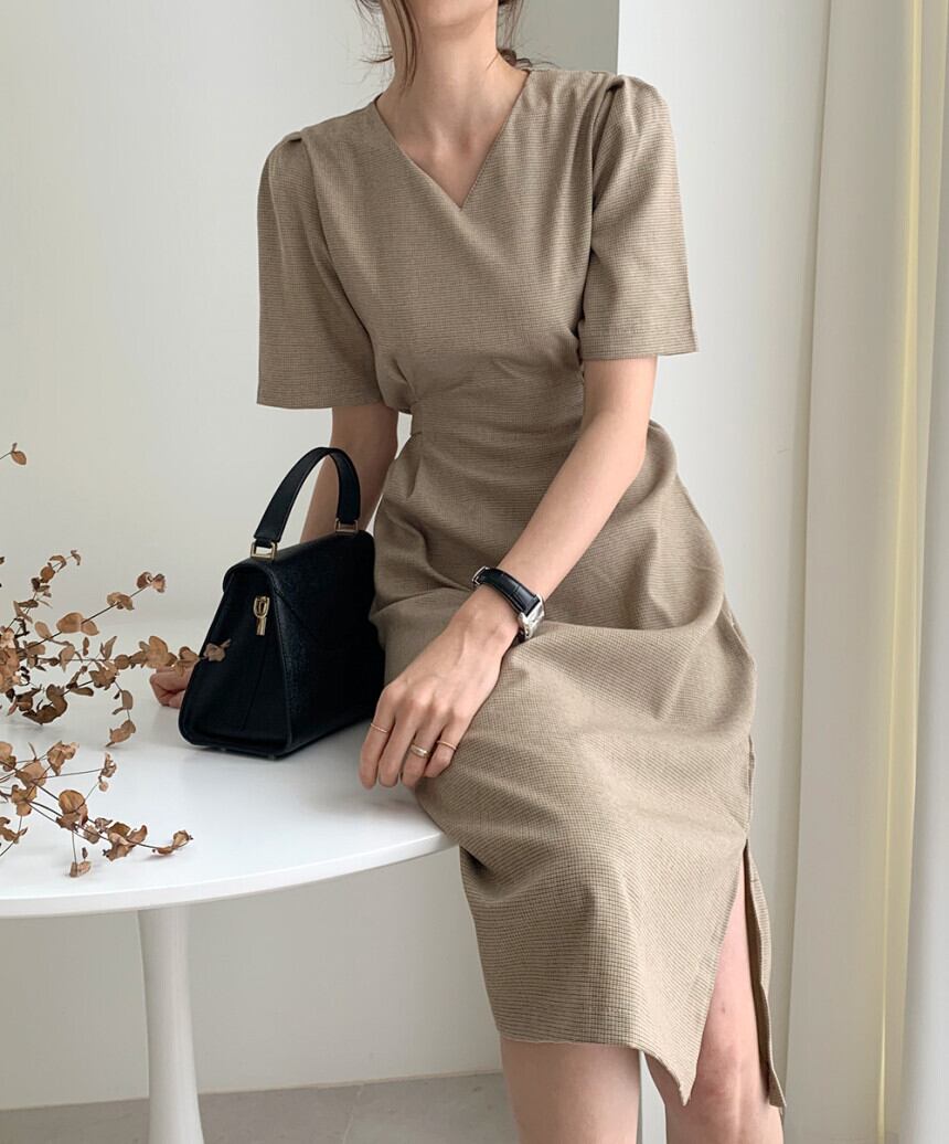 2020年夏のシンプルなスタイルの初恋フレンチレースアップウエストベルフラワー膝上ロングスカートVネック半袖ワンピース 韓国婦人77891226686