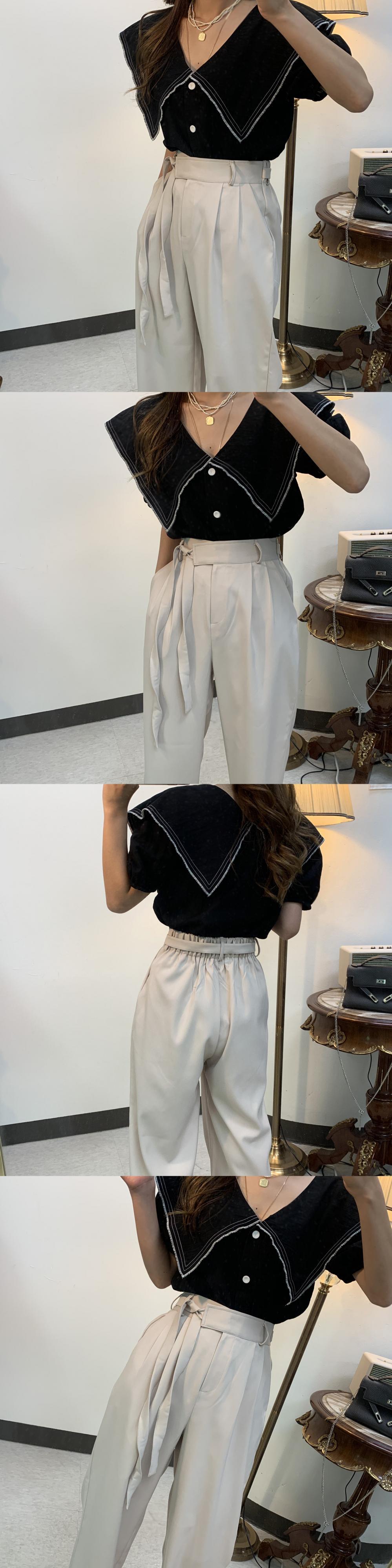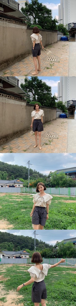 夏の新作レトロラペルオープンラインデザインセンスシングルブレストルーズエイジングシャツ+パーソナライズパンツレディーススーツ 韓国婦人30334021161