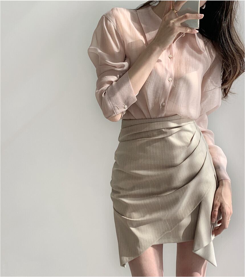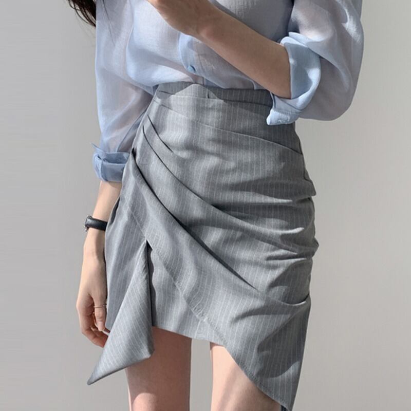ニッチなストライプスカート2020新しい女性の夏のハイウエストバッグヒップスカートは薄くて不規則なAラインスカートです 韓国婦人47725055134