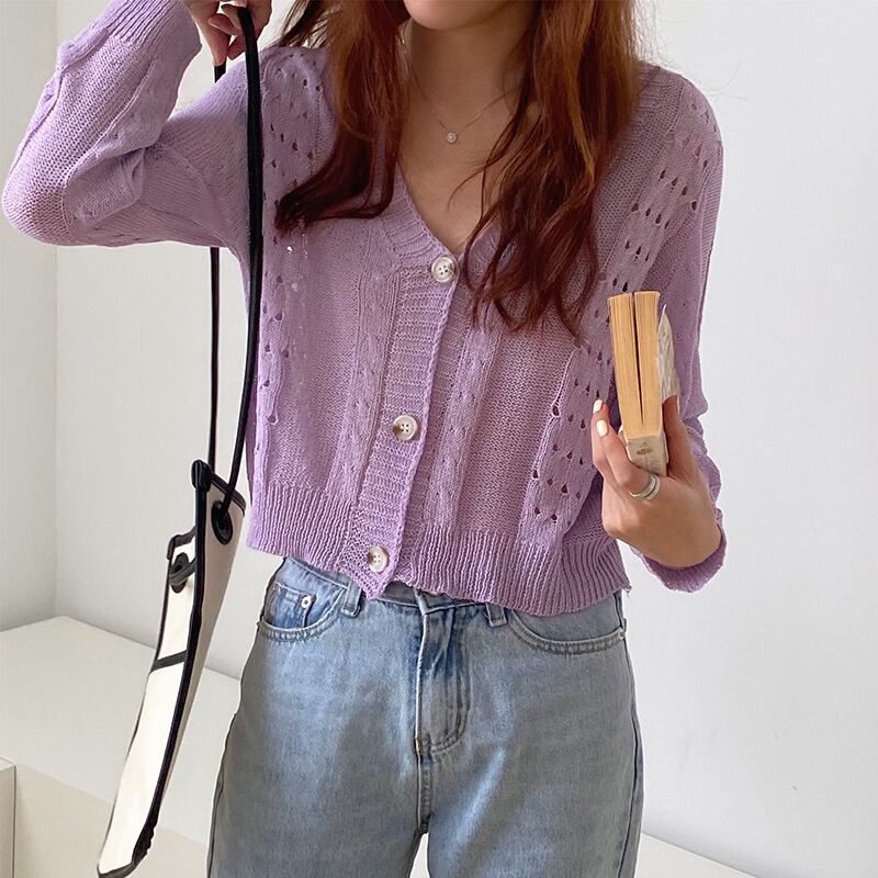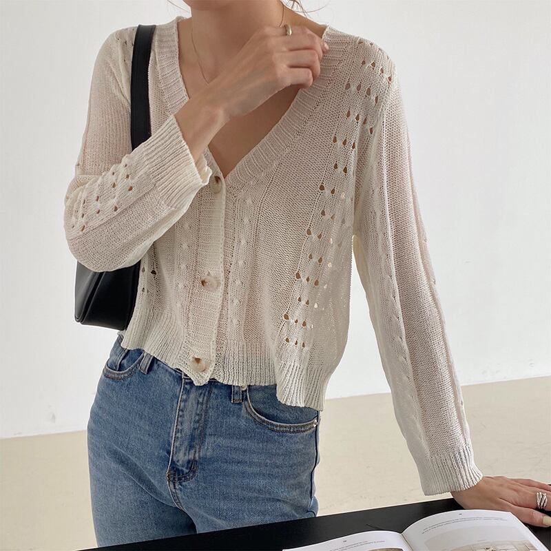 夏の薄手の長袖Vネックニットカーディガンウエスタンスタイルオールマッチ日焼け止めコートスモールショートトップ女性 韓国婦人46591896563