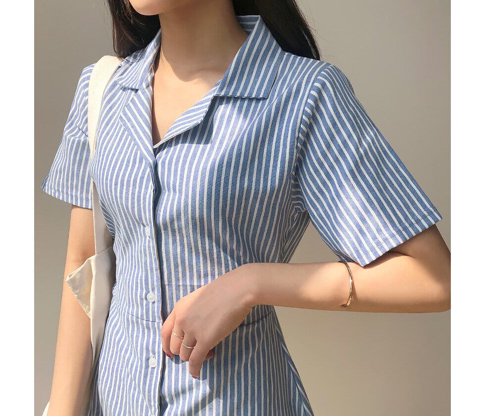 スカート スタンダードストライプカラーシャツ ドレス サマーウェストスリムショート レトロ 夏物 フラワーデザイン 韓国婦人29288304642