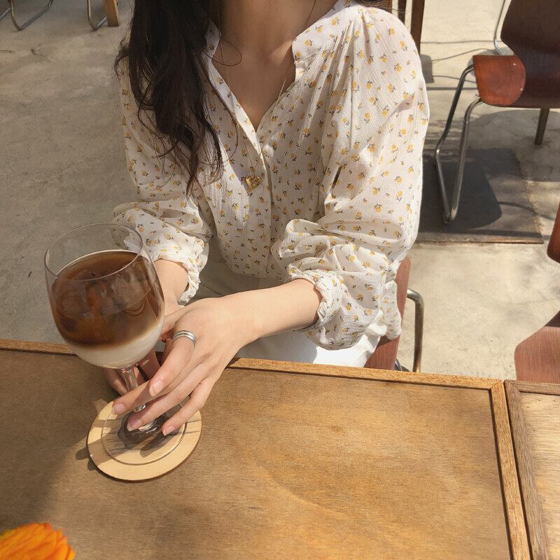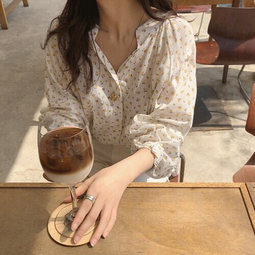 サマーイエローフローラルルーズシャツ レディース ロング 夏物 花柄 韓国婦人3185548432