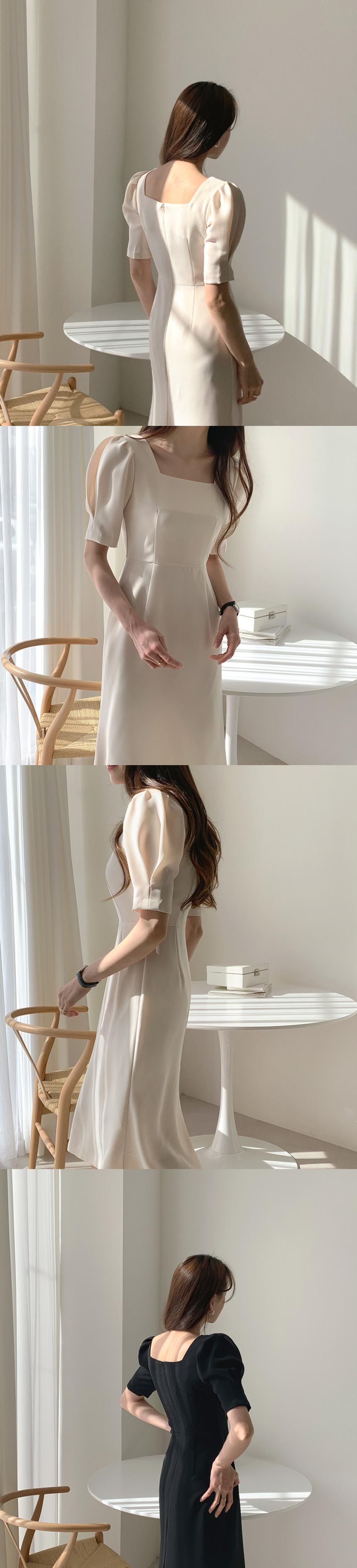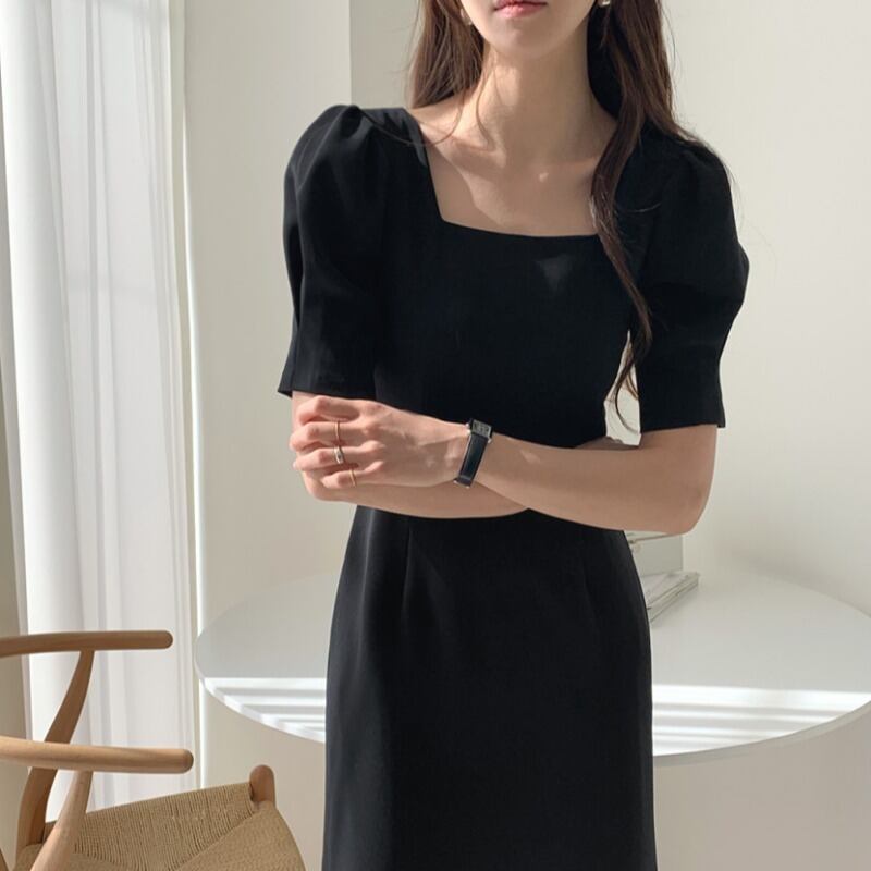 2020年夏の新しいスクエアネックパフスリーブフィッシュテールドレス、ウエストと薄い女性の気質の女神ファンの服 韓国婦人5738016780