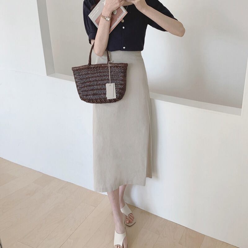 2021年夏のニュースタイルレトロシンワイルドAラインスカートコットン&リネンバッグヒップスカートハイウエストスカートミドル丈スカートメス 韓国婦人41939346714