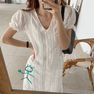 サマーネットセレブヘビーインダストリーホローレースパフスリーブVネック気質レースワンピース女性スリムロングスカートフィッシュテールスカート 韓国婦人41276563254