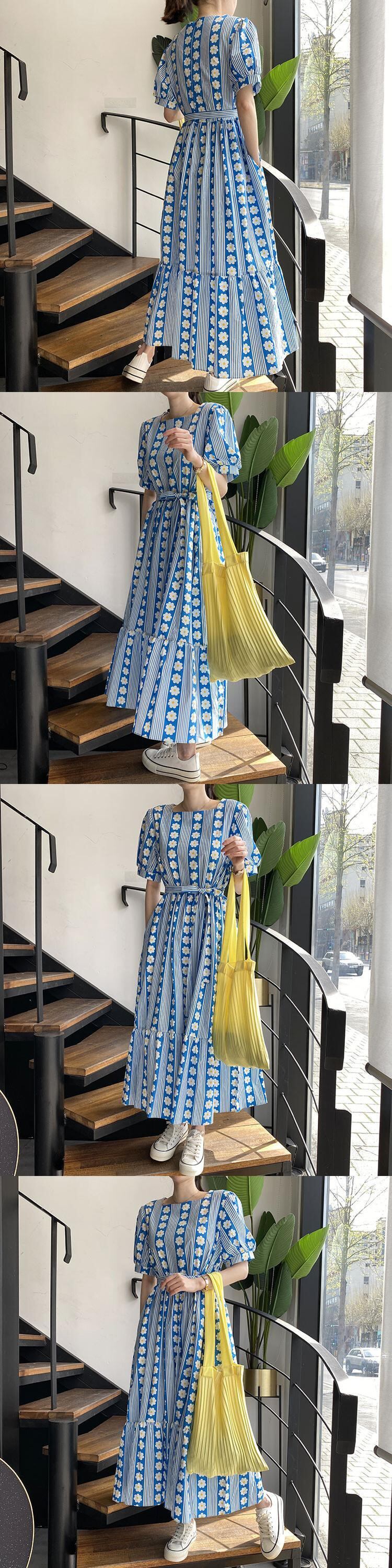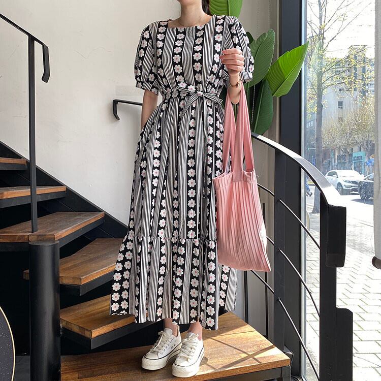 2020年夏のシックな甘くて年齢を減らす気質の小さな菊のウエストと薄いロングスカートのドレスの女性 韓国婦人61436490997