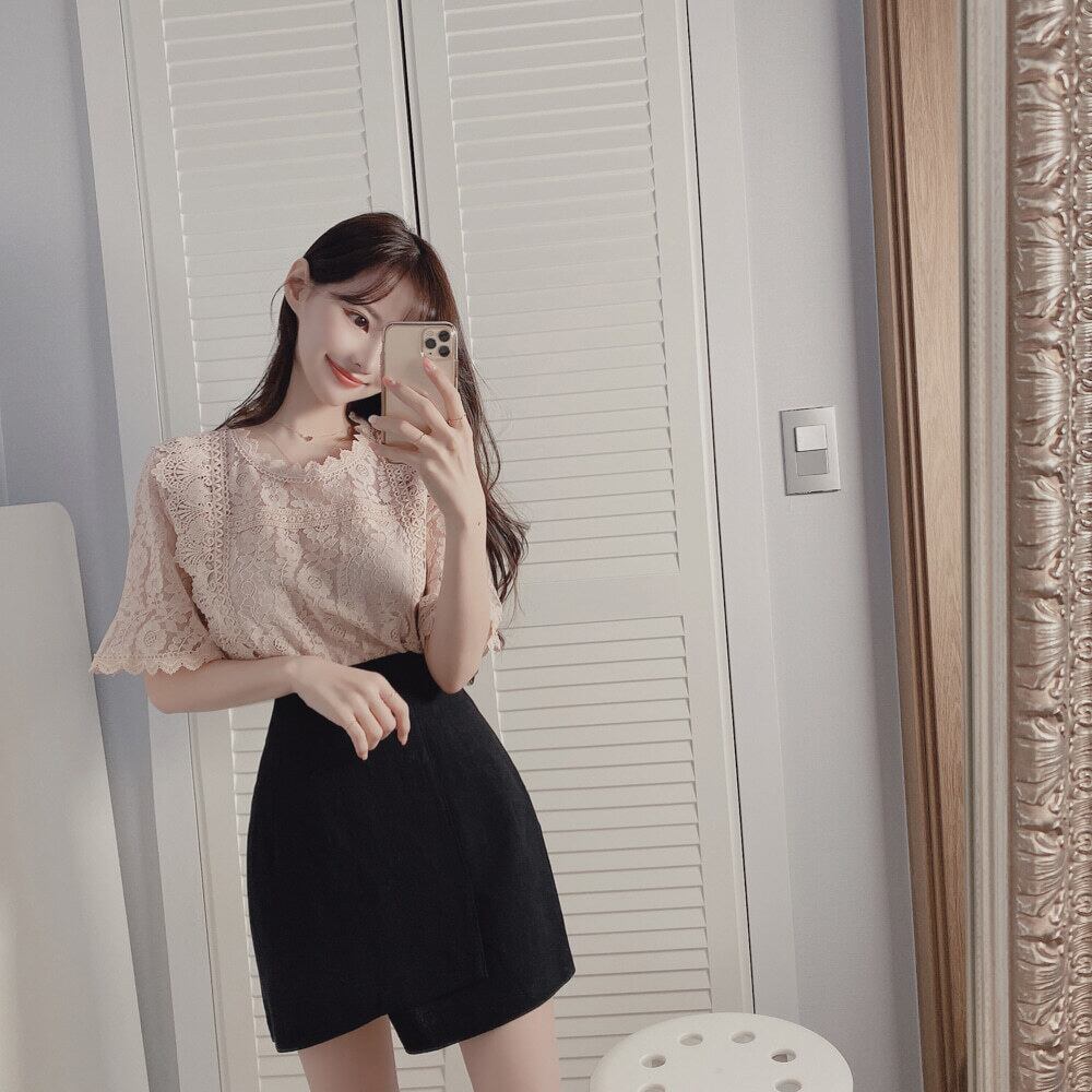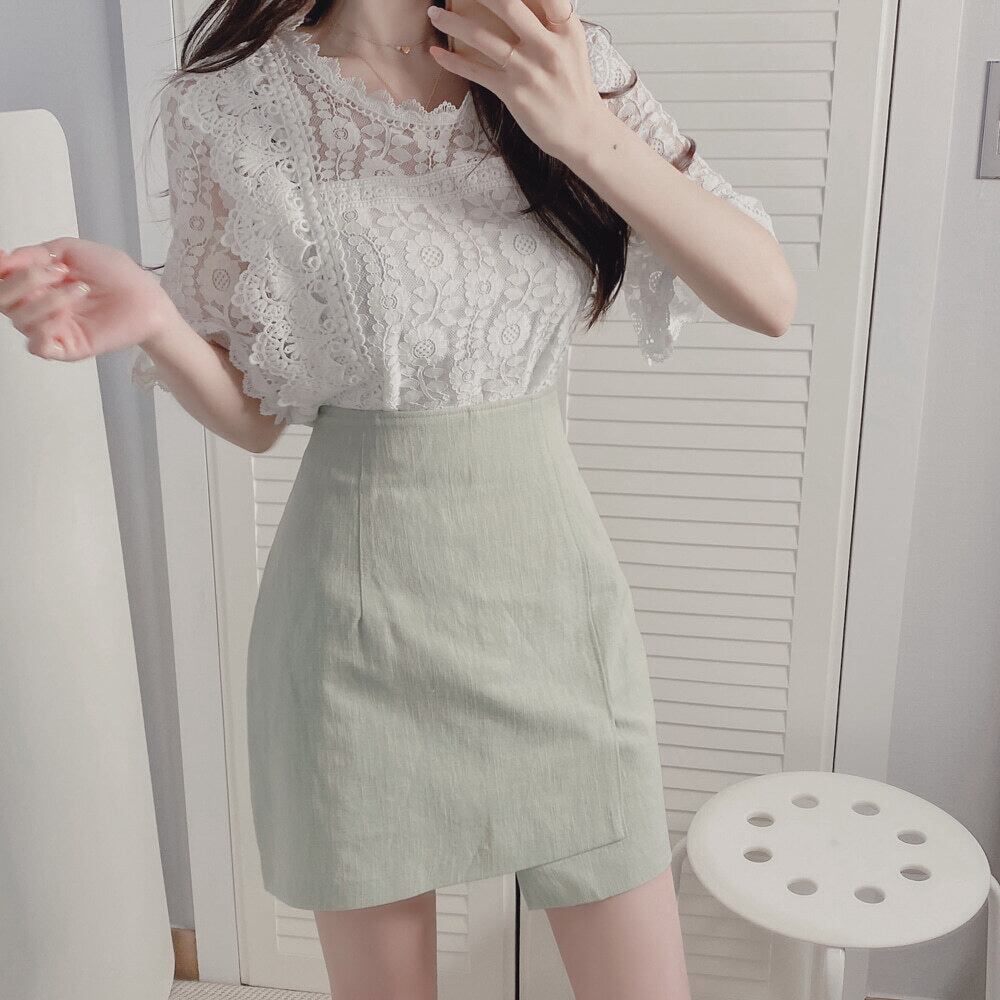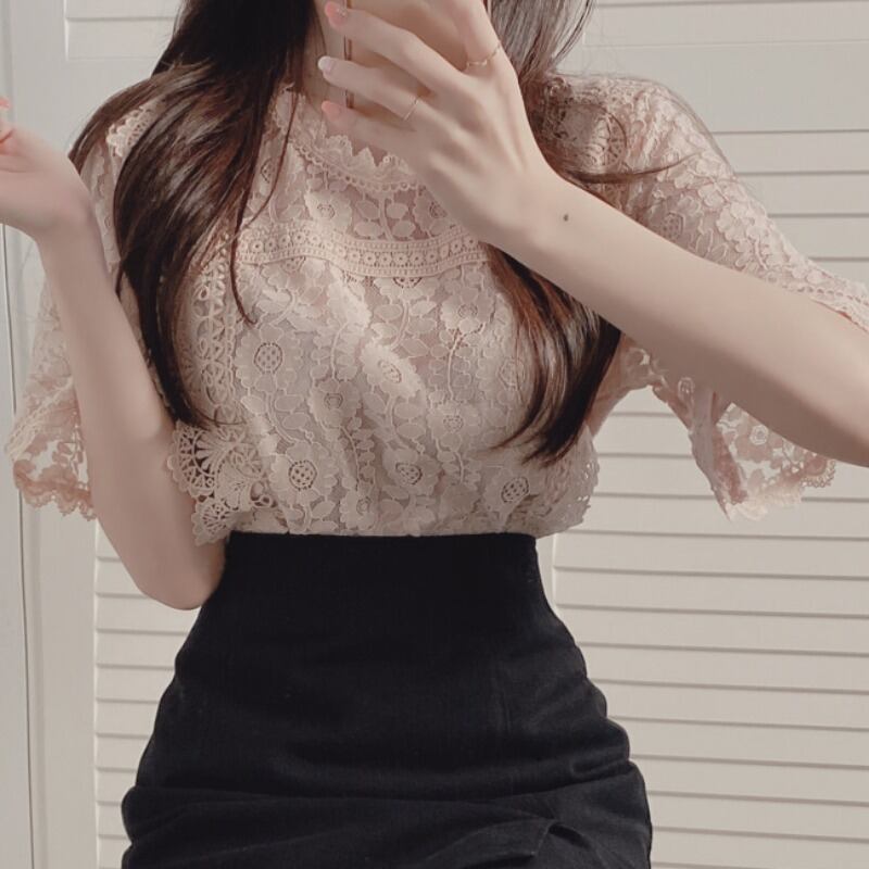 夏のとても妖精のようなスーパーフェアリーレース半袖ブラウス女性 韓国婦人47636372392