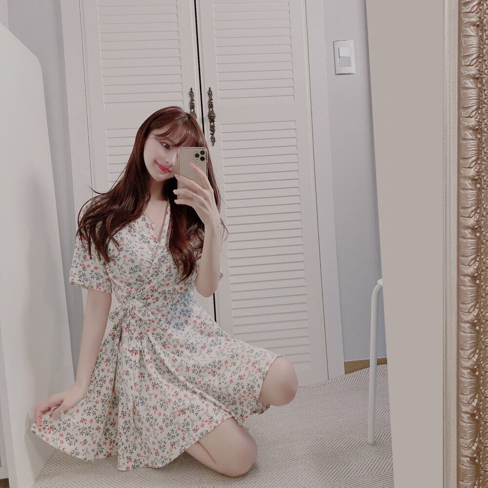 夏の小さなフレンチベルフラワースカート、初恋スカート、エストフローラルドレス、レースアップウエスト、細い気質 韓国婦人53360862521