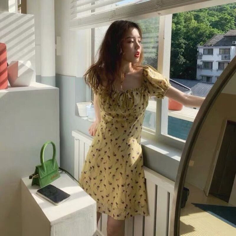 年齢を減らし、小さなワンショルダースカートを備えた新しいフランスのレトロなフローラルスクエアネックドレスの女性の夏バージョンは薄かった 韓国婦人95001567265