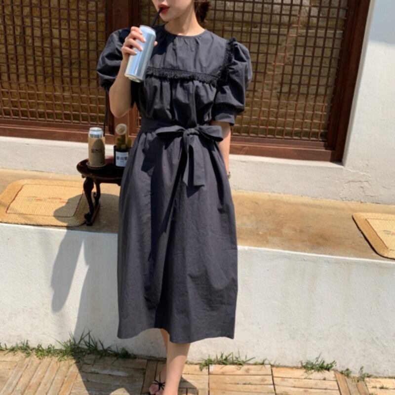 夏の新しいinsバブルスリーブ気質telルーズタイ非常に妖精ニッチドレスロングスカート女性 韓国婦人15207061746