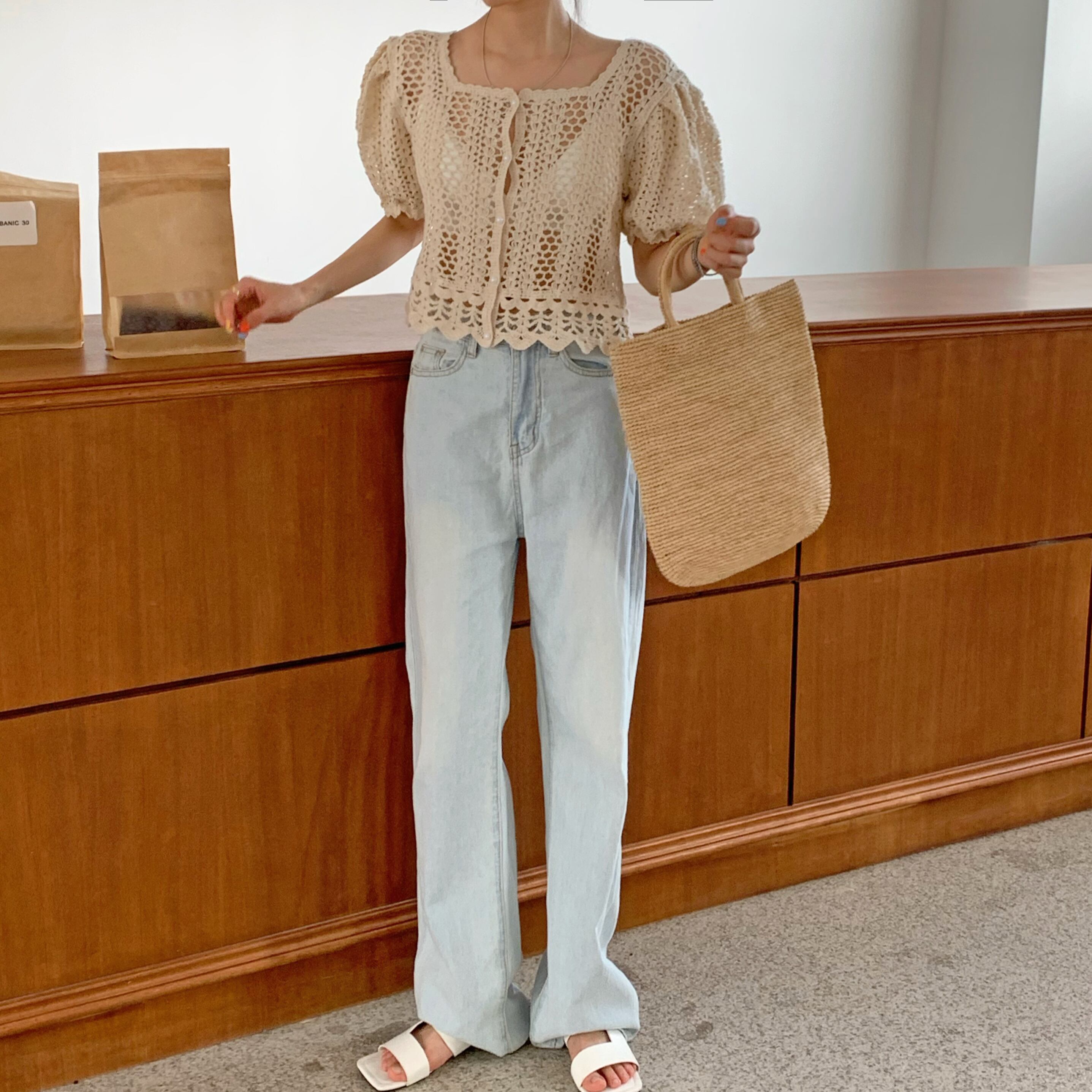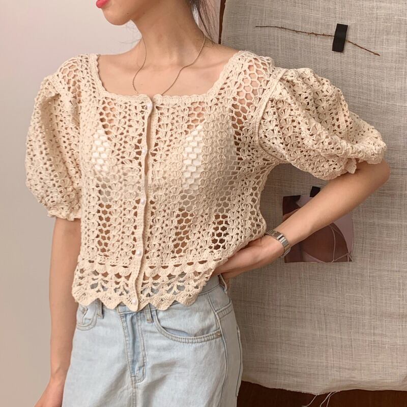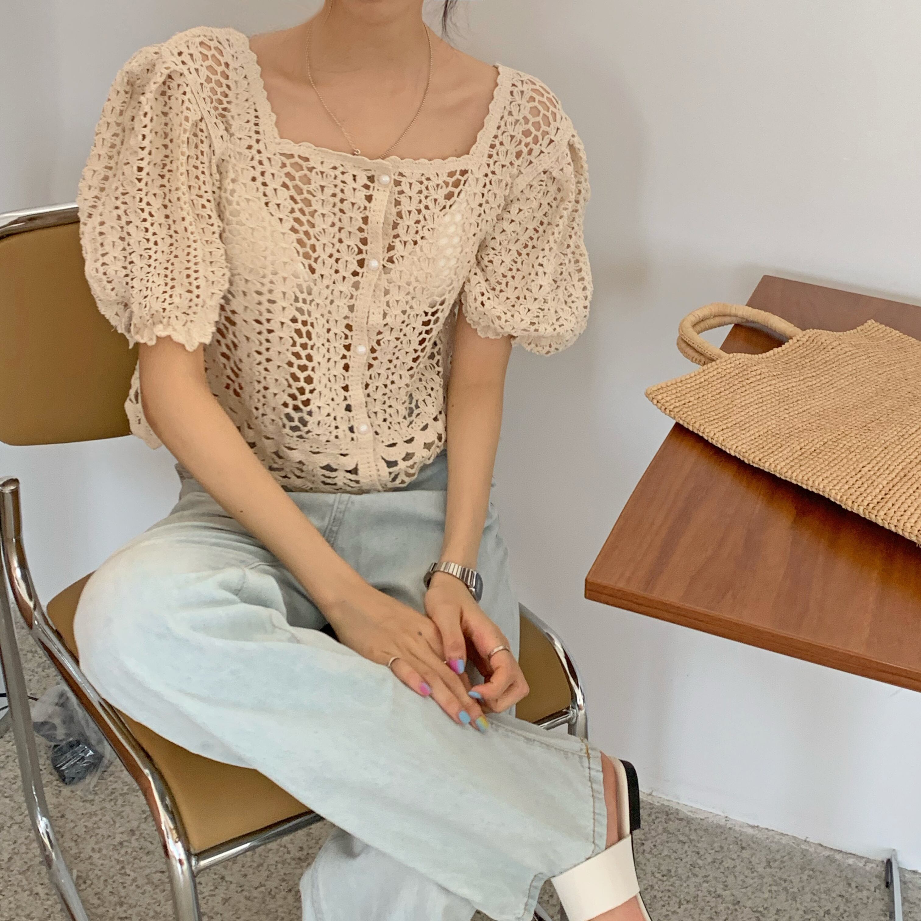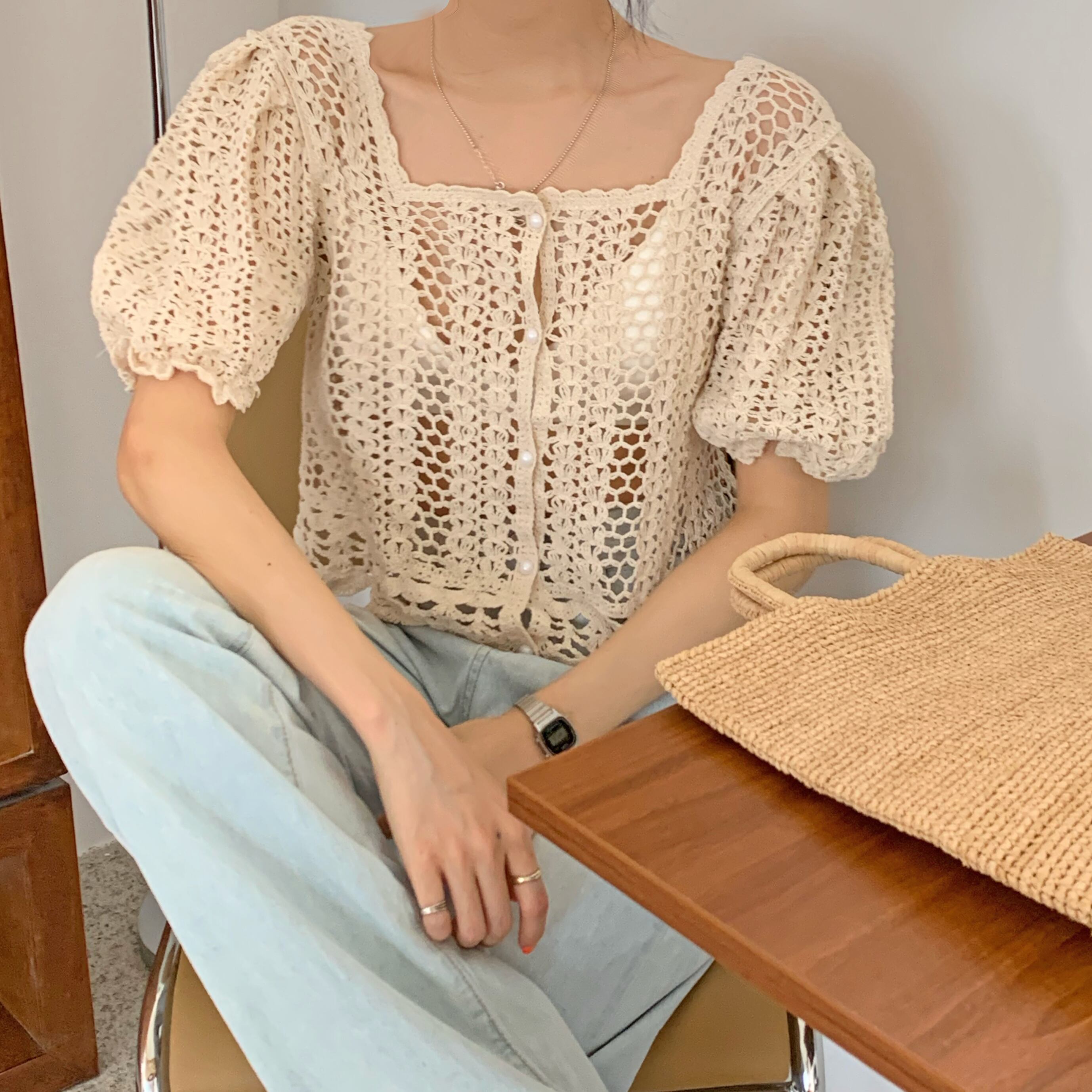 2020年夏の新作インホロートップウェアシャツ、レディーススクエアカラートップ、薄手のワイルドカーディガン 韓国婦人86622624598