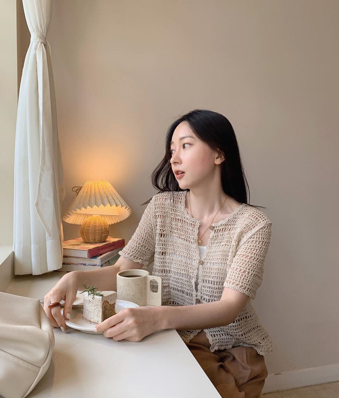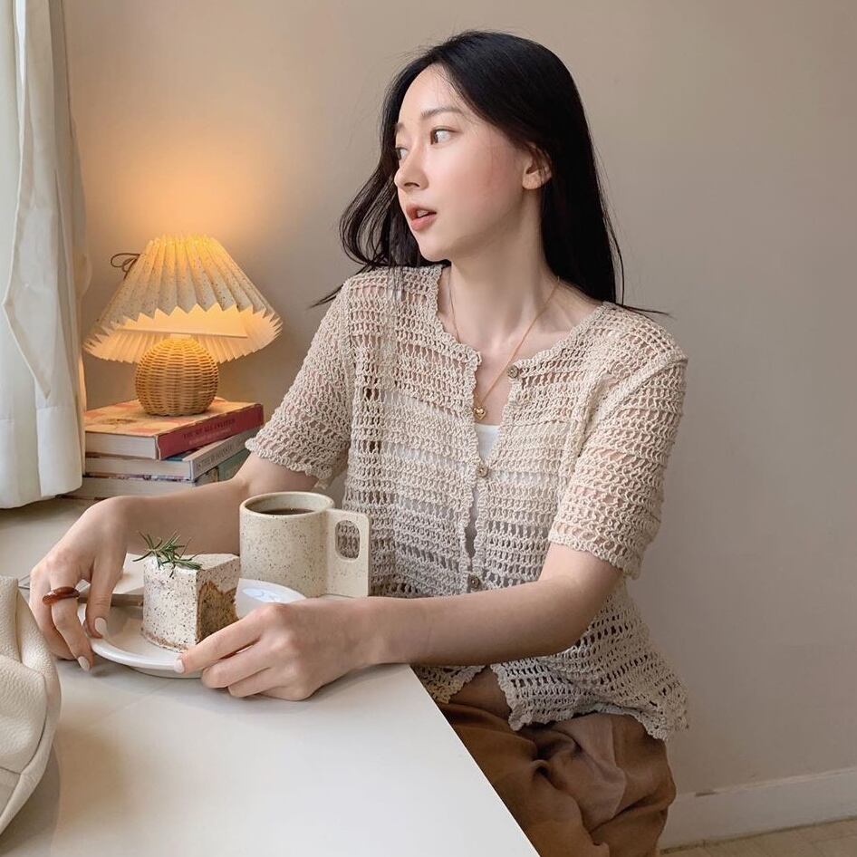 シックな夏の優しいラウンドネックシングルブレストルーズカジュアル多目的中空薄い日焼け止めセーター女性 韓国婦人7586654028