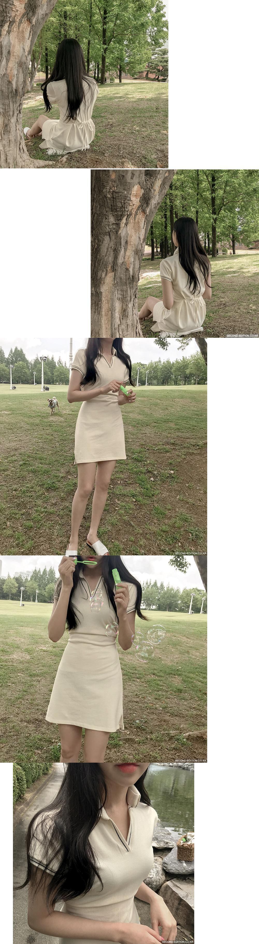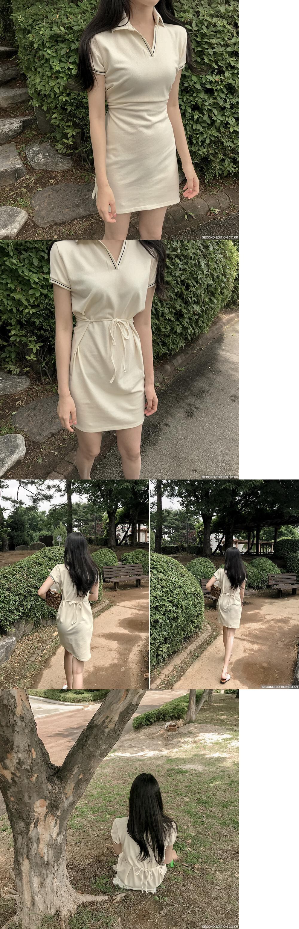 ゴーストホースポロカラー半袖ドレス女性ルーズネクタイウエストウエストTシャツドレスカジュアルワイルドスタイル 韓国婦人29747678895