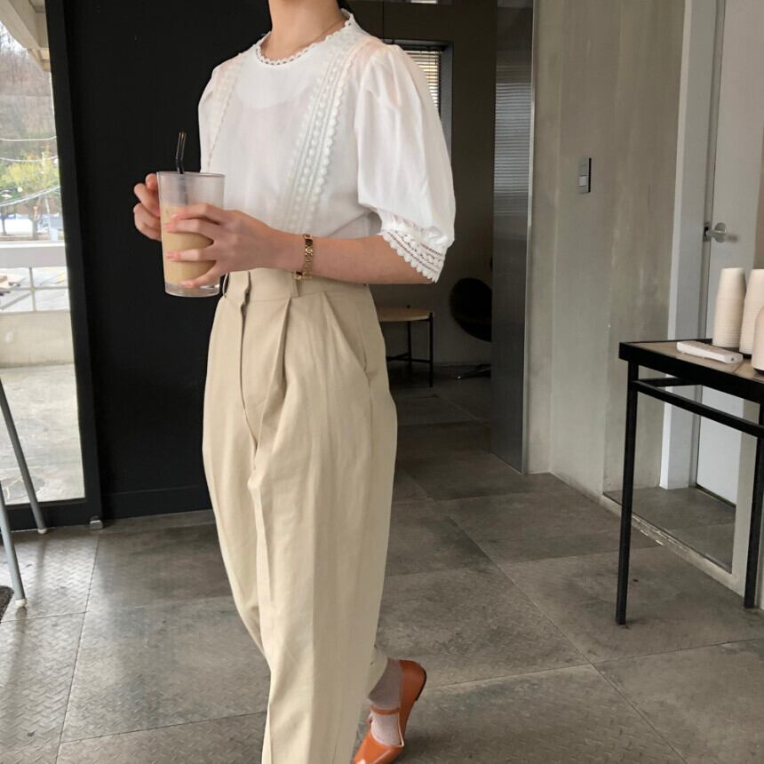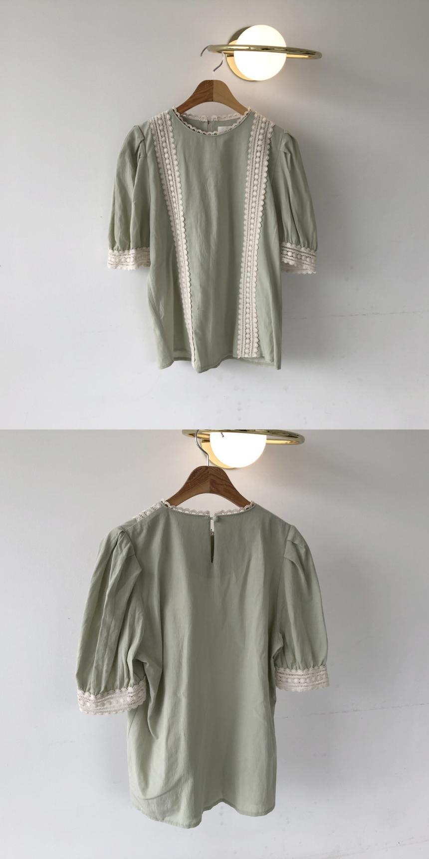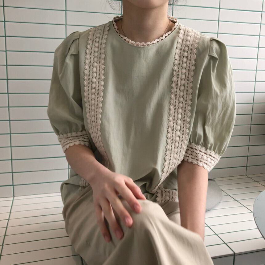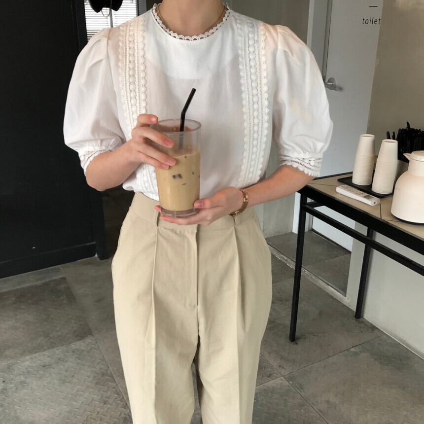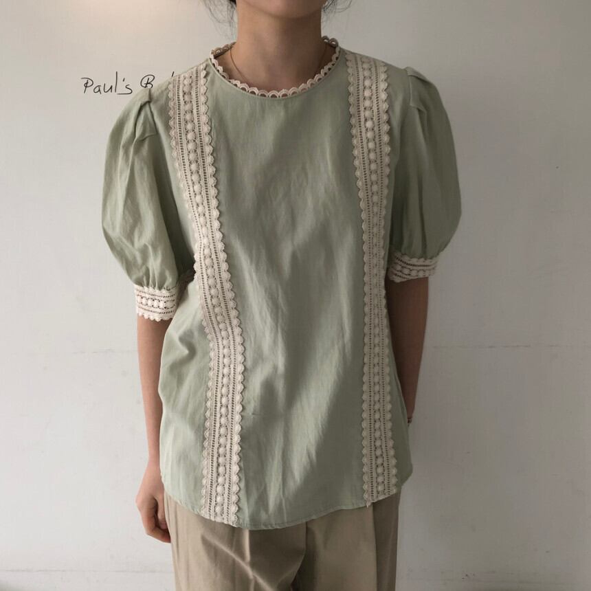 シックなレトロな夏の甘い年齢削減ニッチ中空レースステッチ半袖ルーズシャツ 韓国婦人48345169471