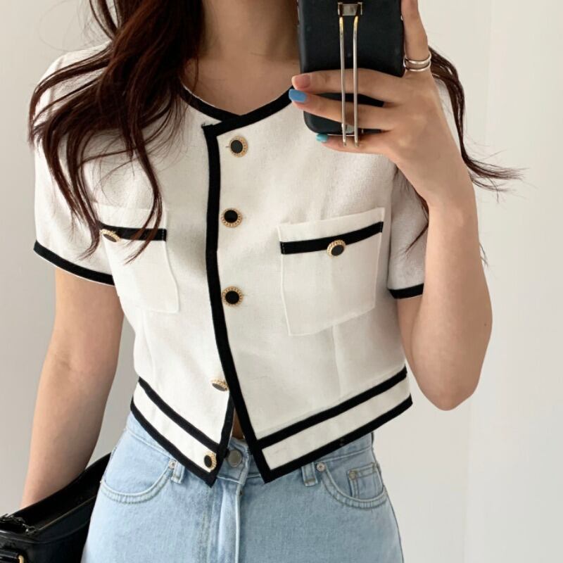 シンプルなスタイルのショートジャケットの女性フレンチレトロクロップドシャツ半袖デザインニッチライトと成熟した薄いトップ夏 韓国婦人10656408854