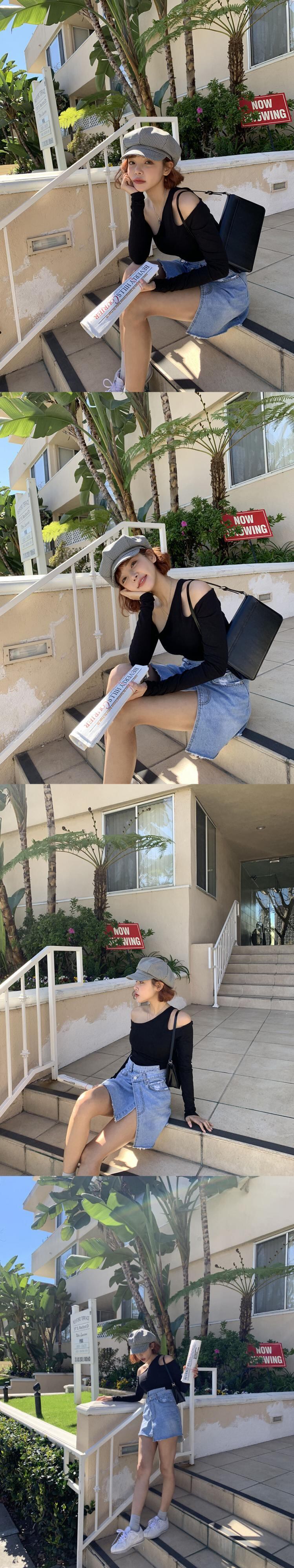 夏のニュースタイルシックなウエスタンスタイルの年齢削減非対称ストラップレススリミング長袖Tシャツ女性の陰謀トップ 韓国婦人42287569068