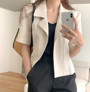 シックな気質、軽い調理風、襟のデザイン、スリムな無地のトップ、オールマッチのカジュアルな薄い半袖ジャケットの女性 韓国婦人56805691812