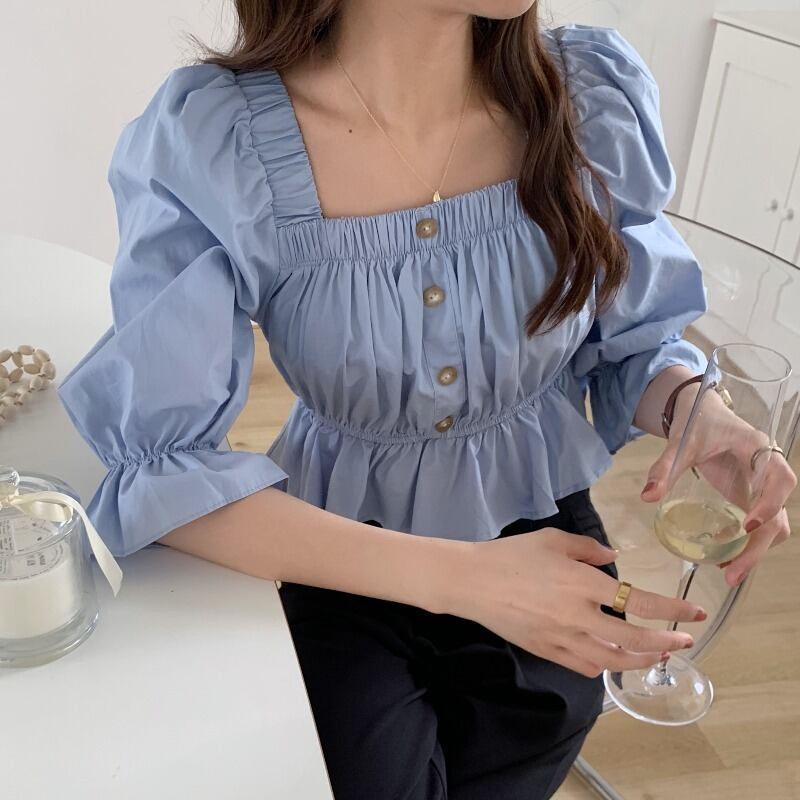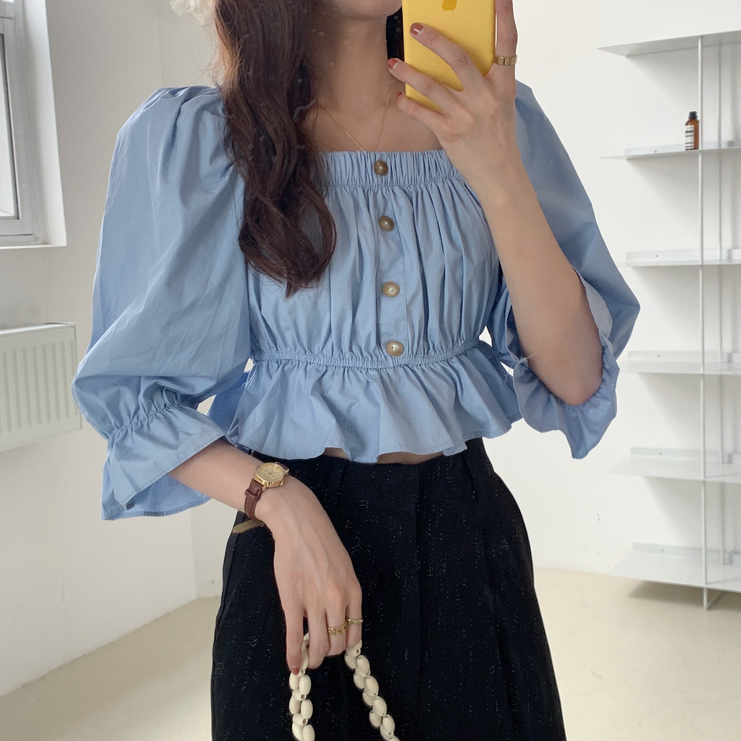 夏のニュースタイルスウィートスーパーフェアリーワンショルダートップレディースショートスクエアネックセクシーフリルウエストスモールシャツ 韓国婦人47997662939