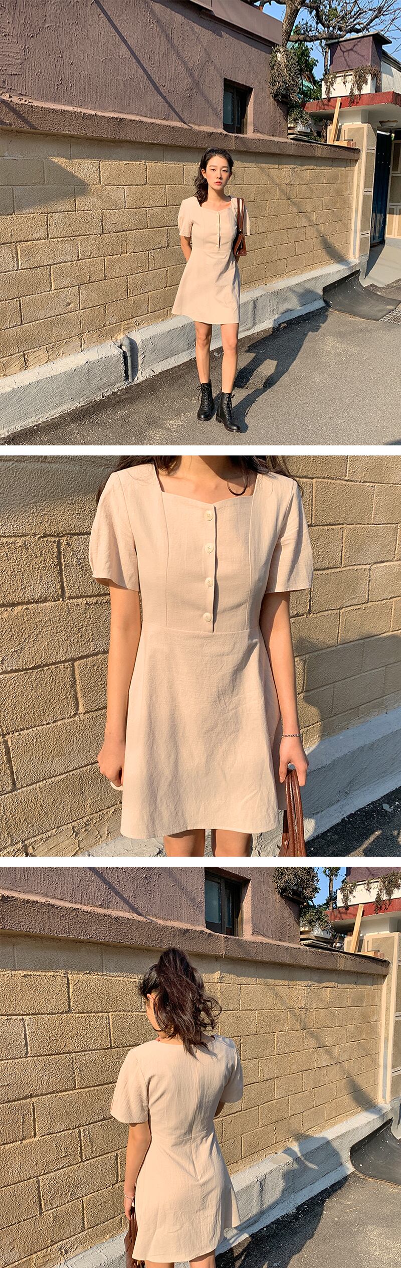 フランスのニッチ、レトロなスクエアカラー、薄い腹、綿とリネンのドレス、気質の女神ファンヤンキ、2020年夏 韓国婦人95943053817
