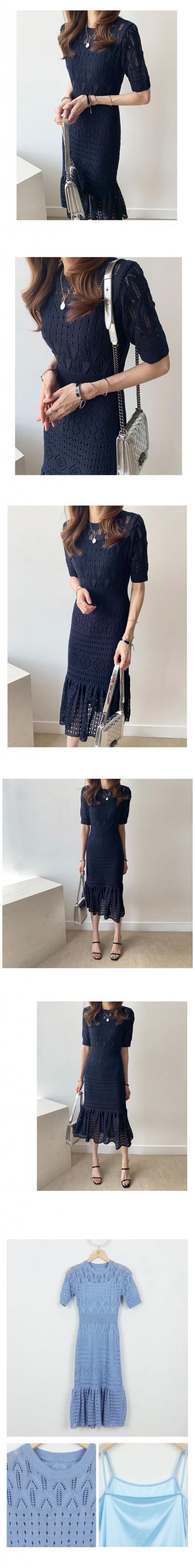 シックでエレガントな気質スリムスリミングアイスシルク中空ラウンドネックニットバッグヒップフィッシュテールドレス女性の夏 韓国婦人95214216538