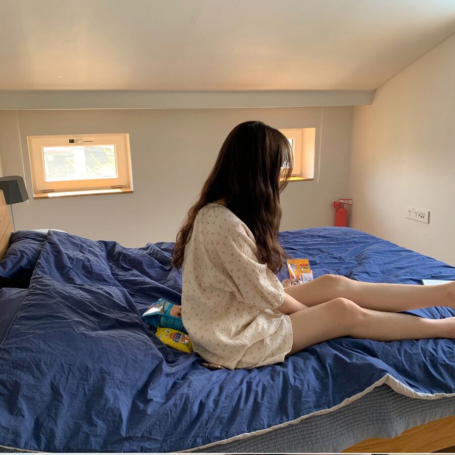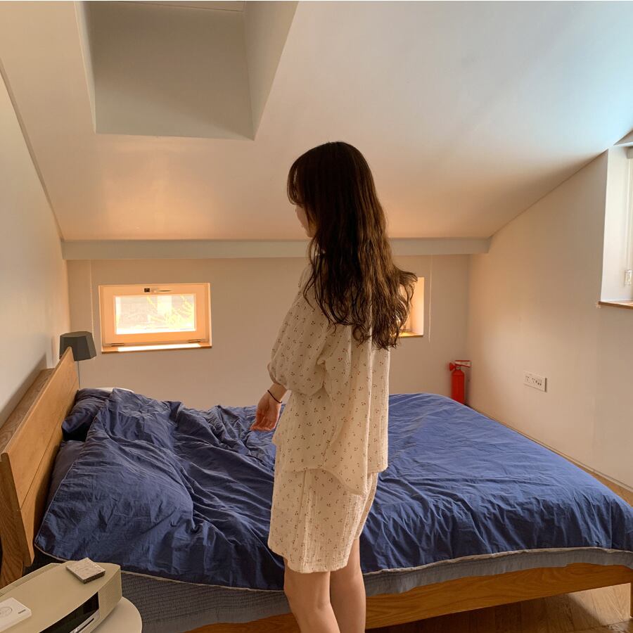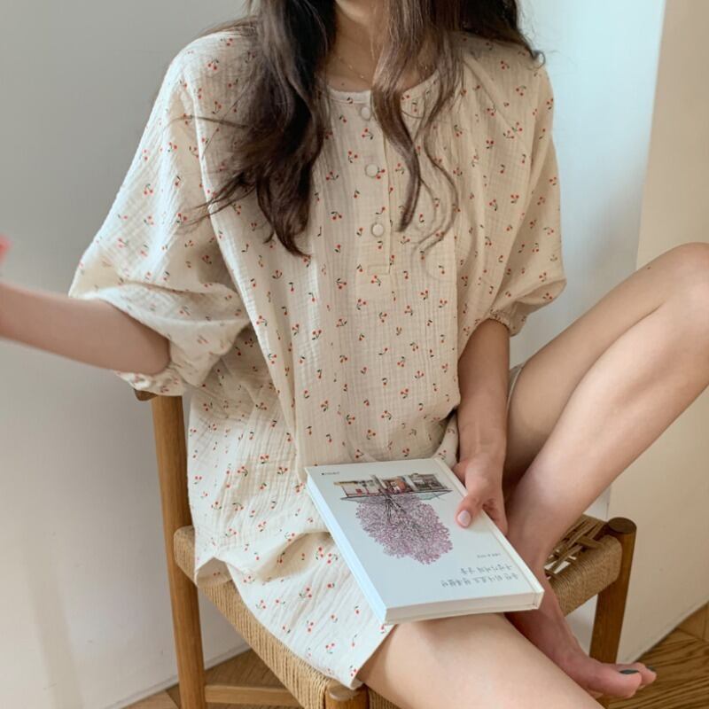 insシンプルパストラルスタイルチェリーコットンリネンパジャマ女性夏半袖ショーツホームサービスツーピーススーツ薄片 韓国婦人94632340962