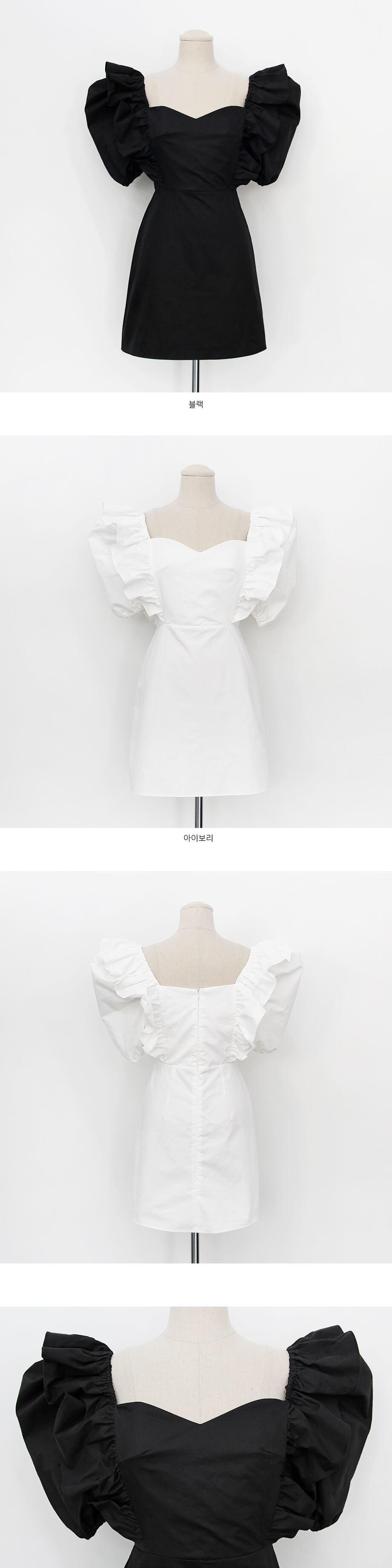シックなフレンチスクエアカラーリークカラーボーンスリムスリミングフリルパフスリーブスモールドレスショートスカートメス 韓国婦人24978082146