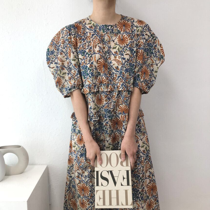 2020年夏の新しいシックなレトロなカラーパターンキクラゲ半袖気質ドレス女性 韓国婦人34758694494