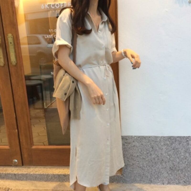 夏の新しいシックな小さな新鮮なウエストシングルブレストロングスカートは薄い気質のルーズレースドレスの女性でした 韓国婦人41631401755