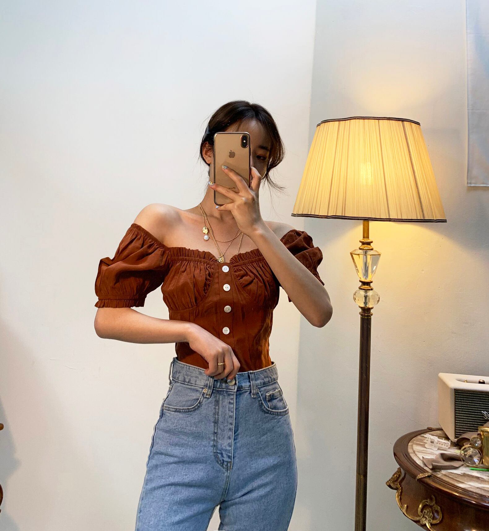 シックなブラウスデザインセンス2020夏のスクエアカラーとキクラゲは薄い半袖シャツの女性です 韓国婦人89640653006
