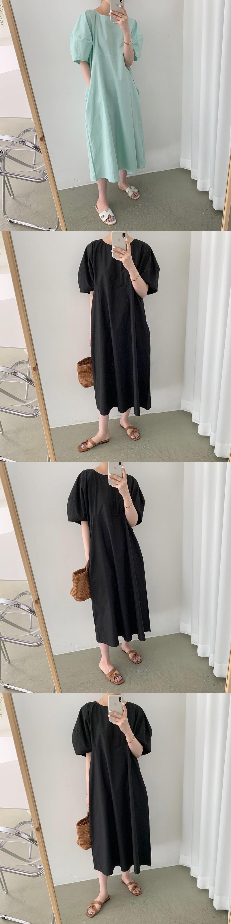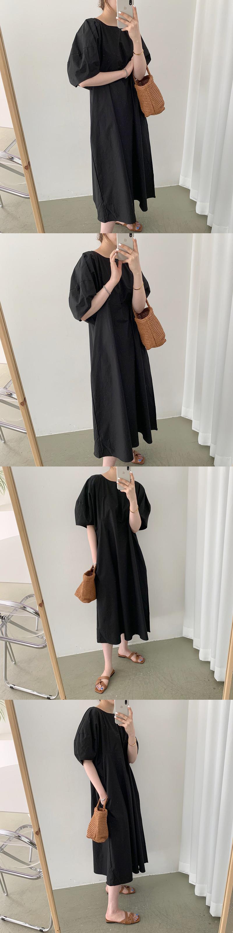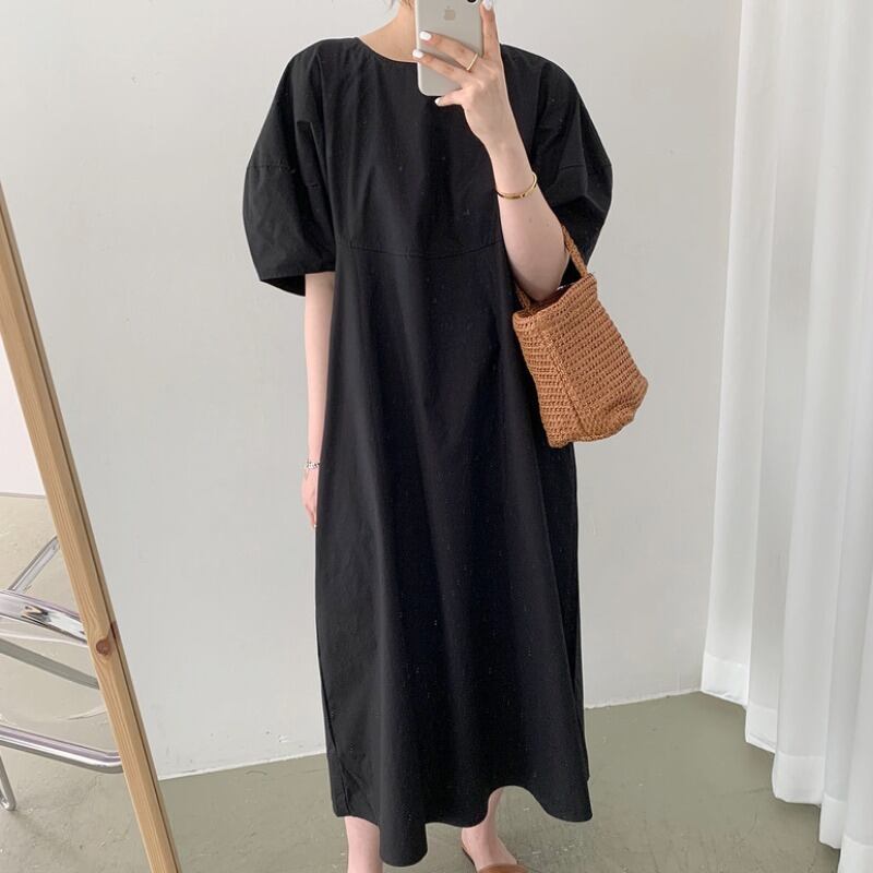 夏のニュースタイルシックなミニマリズムホワイトラウンドネックルーズカジュアルパフスリーブドレス女性ロングスカート 韓国婦人89633903698