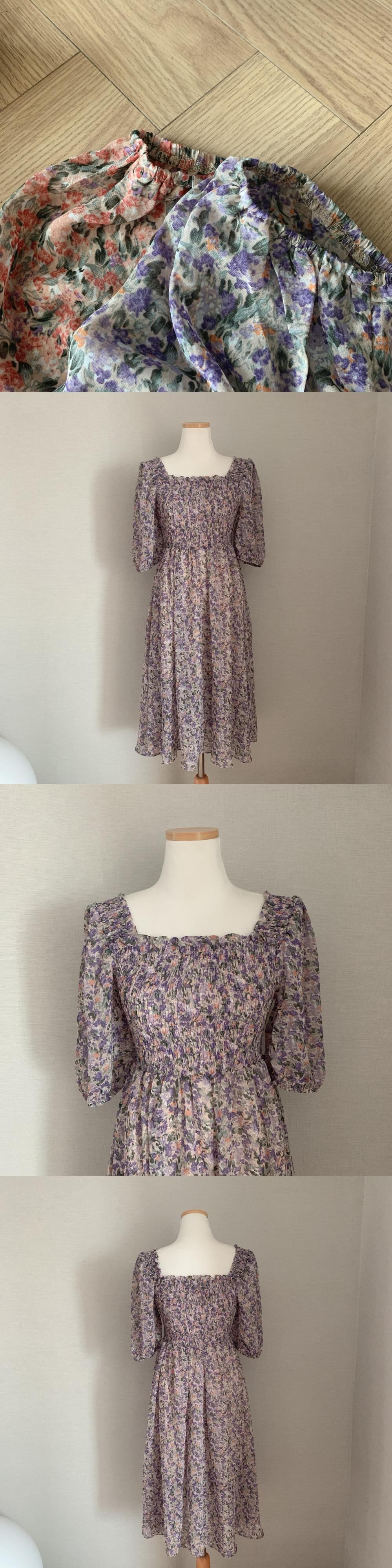 薄手カラースリムハイウェストウェストシフォンフローラルドレス レディース 花柄 スクウェア 韓国婦人2693826309
