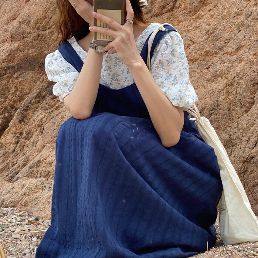 スタイルフローラルスリーブシャツ ルーズドレス ロングスカート 花柄 韓国婦人13560454912