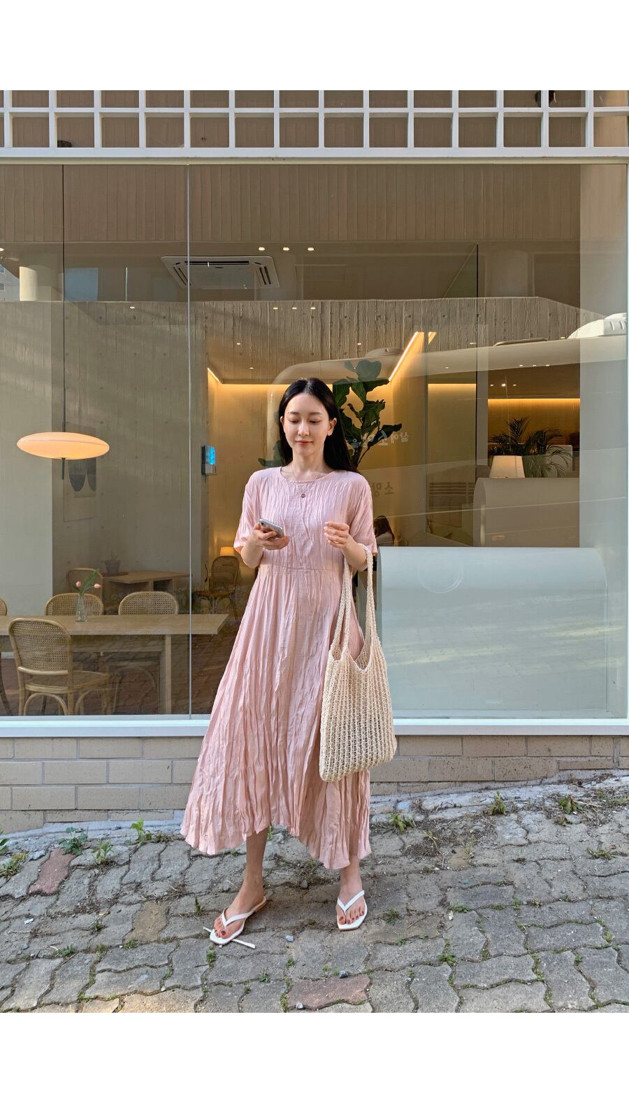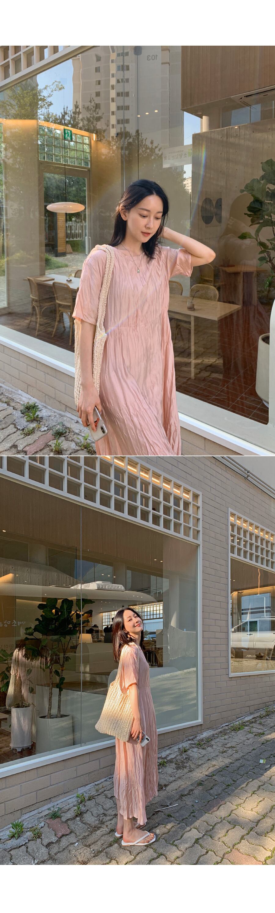 サマースタンダードルーズ薄手プリーツソリッド カラードレス ロングスカート レトロ 夏物 ソリッドカラー 韓国婦人33362864263