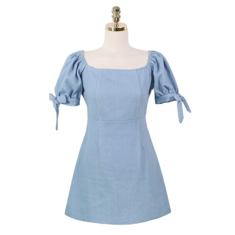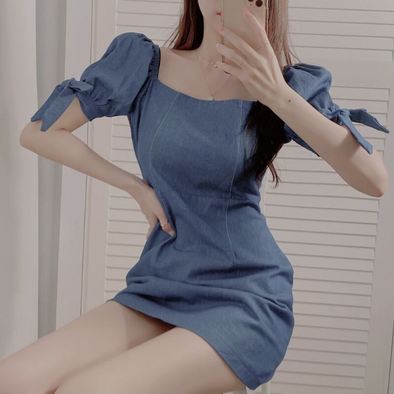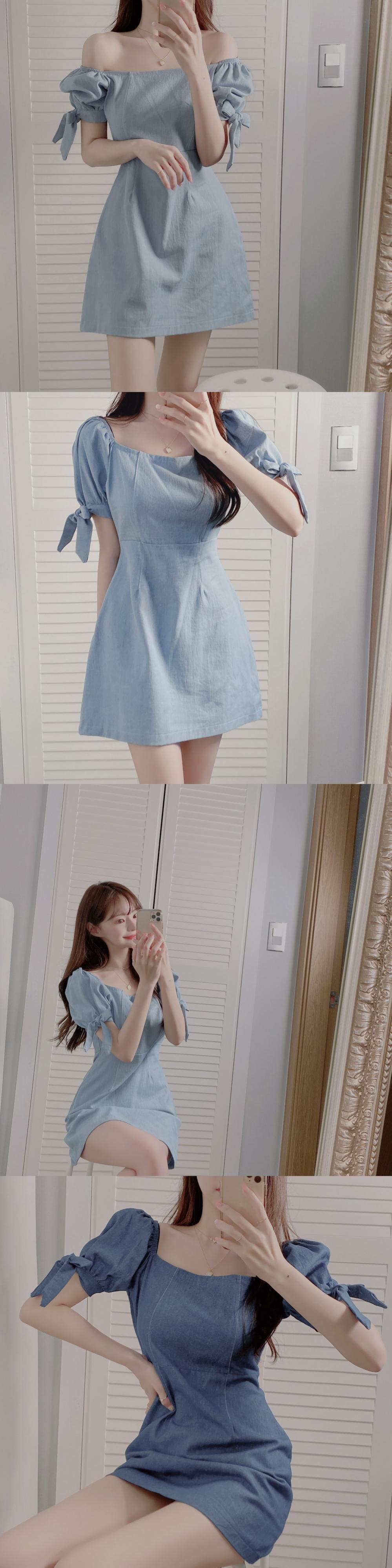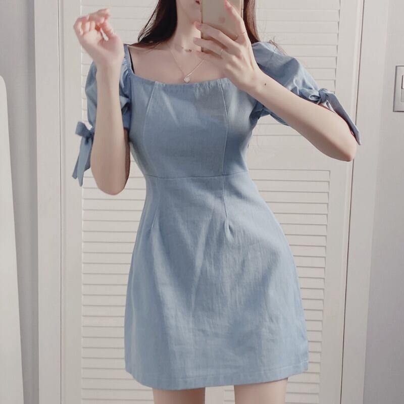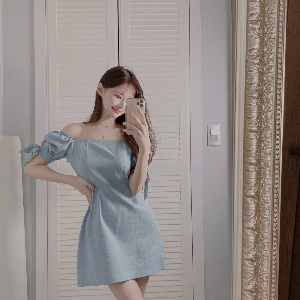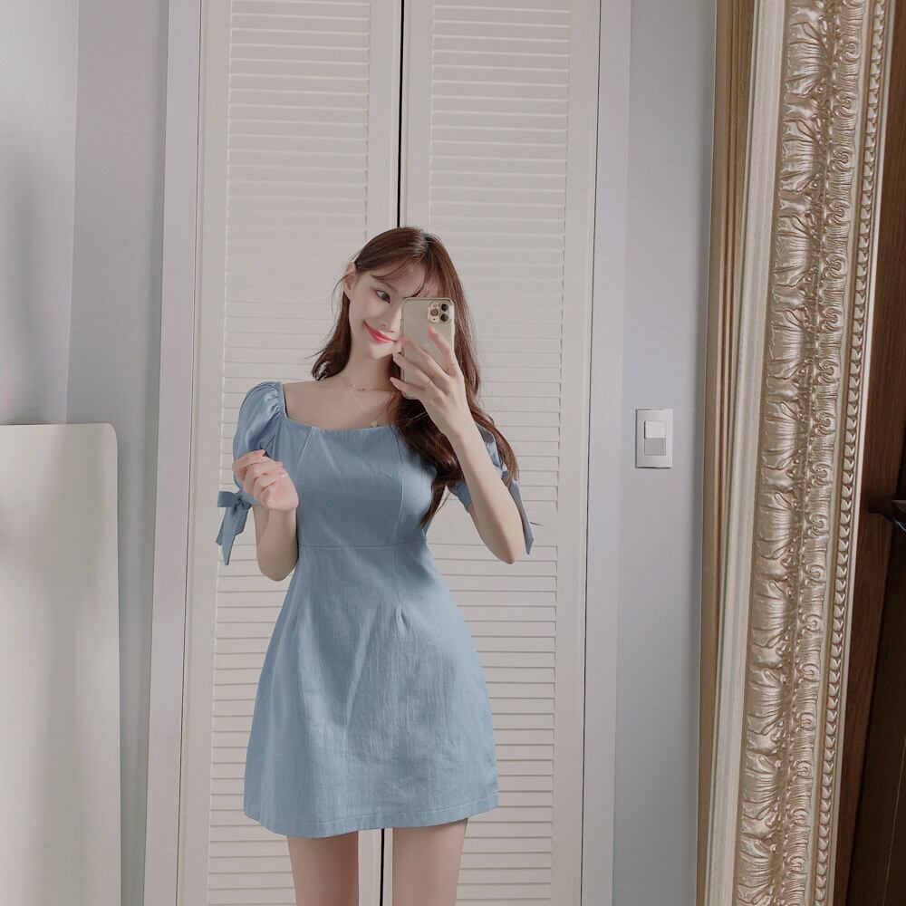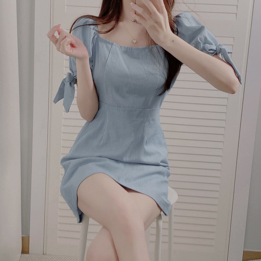 スタンダードスリーブウェストストラップレスドレス サマー リボン レトロ 夏物 韓国婦人59954546998