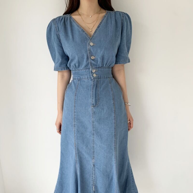 ウェストVネックロングスカート スタンダードドレス レトロ 韓国婦人60158759525