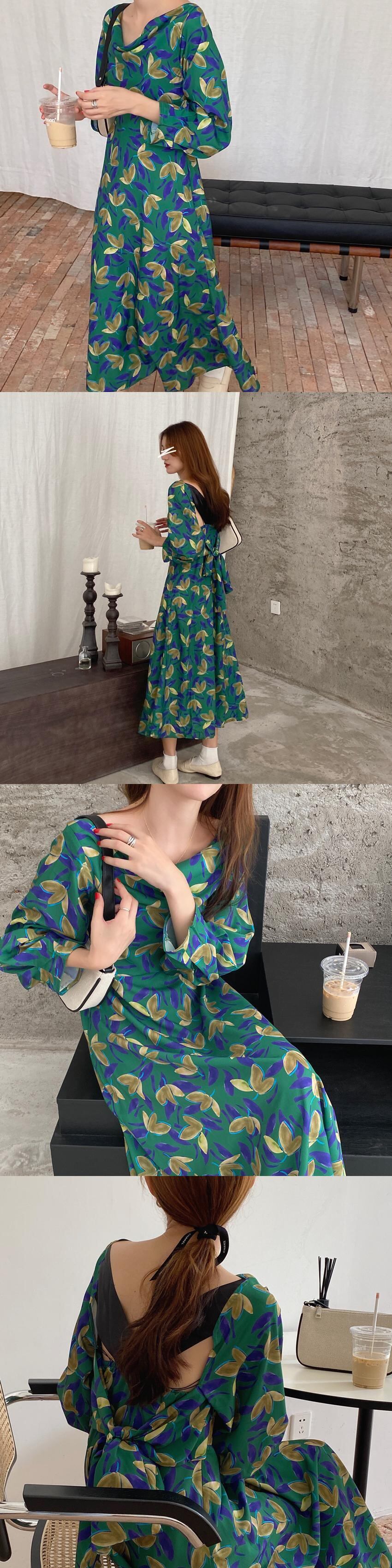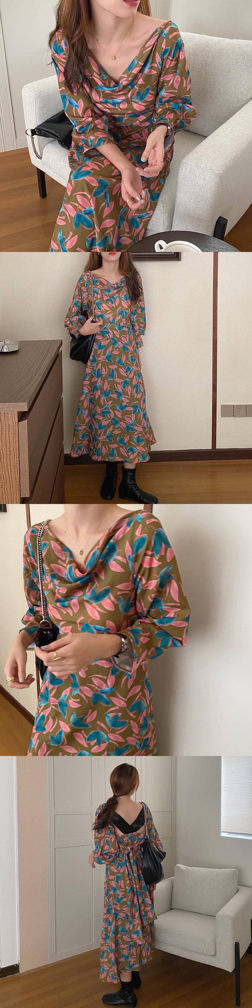 スプリングバックレースリボンフローラルドレス スリムロングスカート 春物 花柄 韓国婦人60671187873