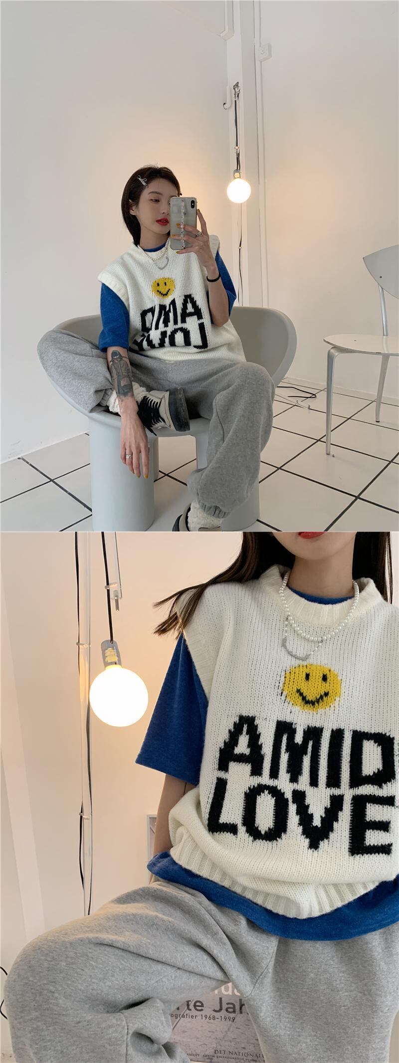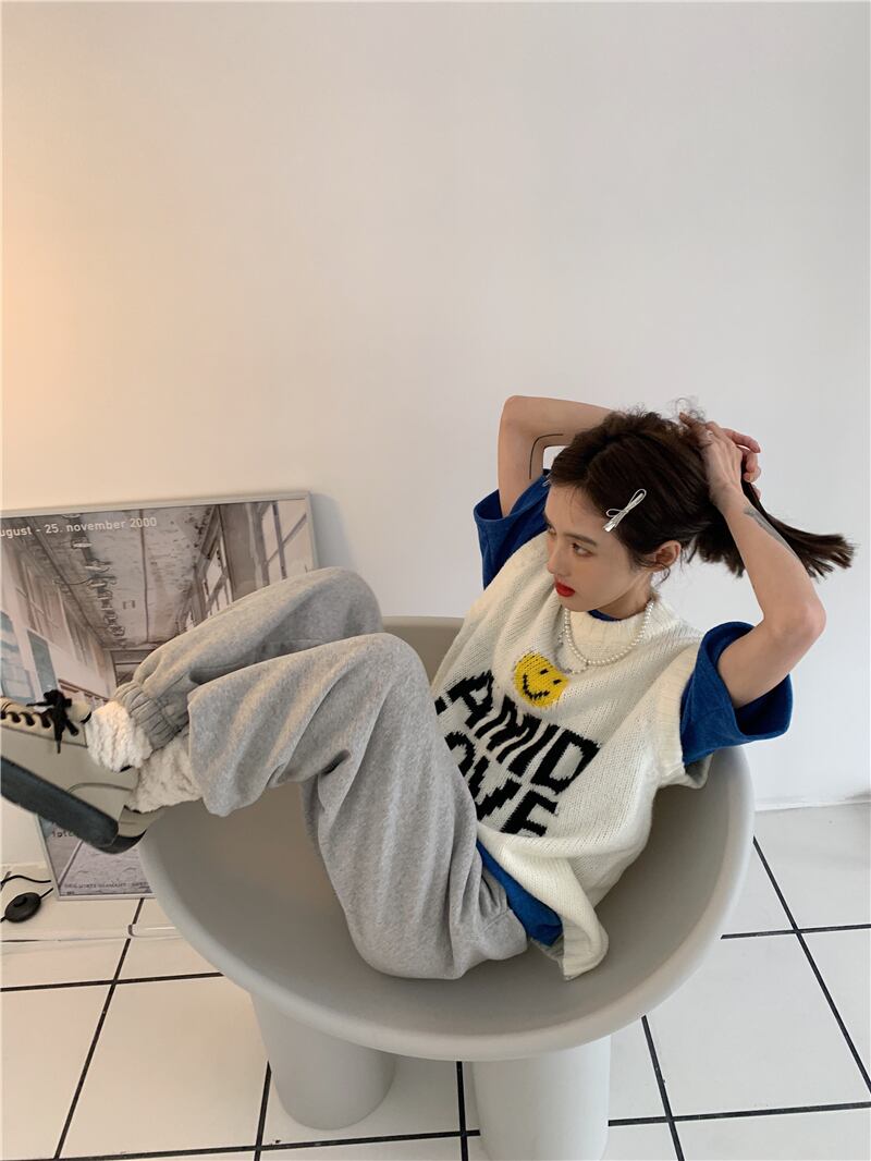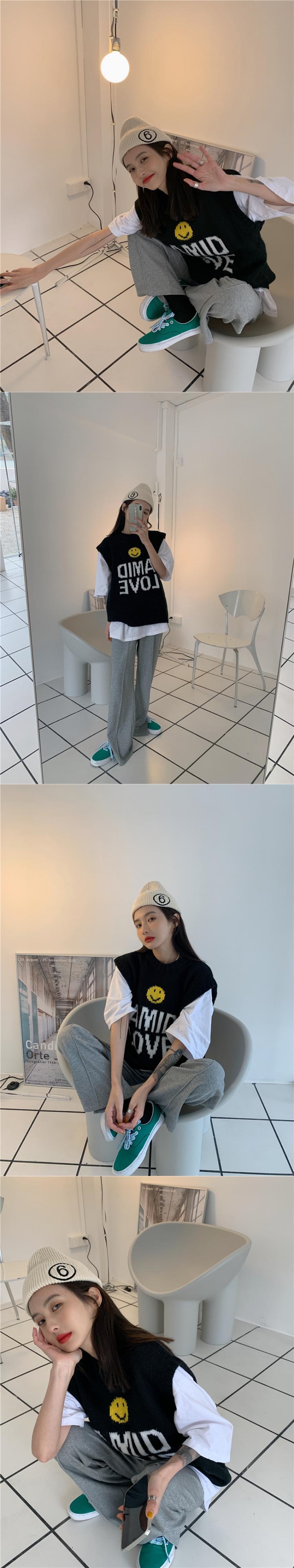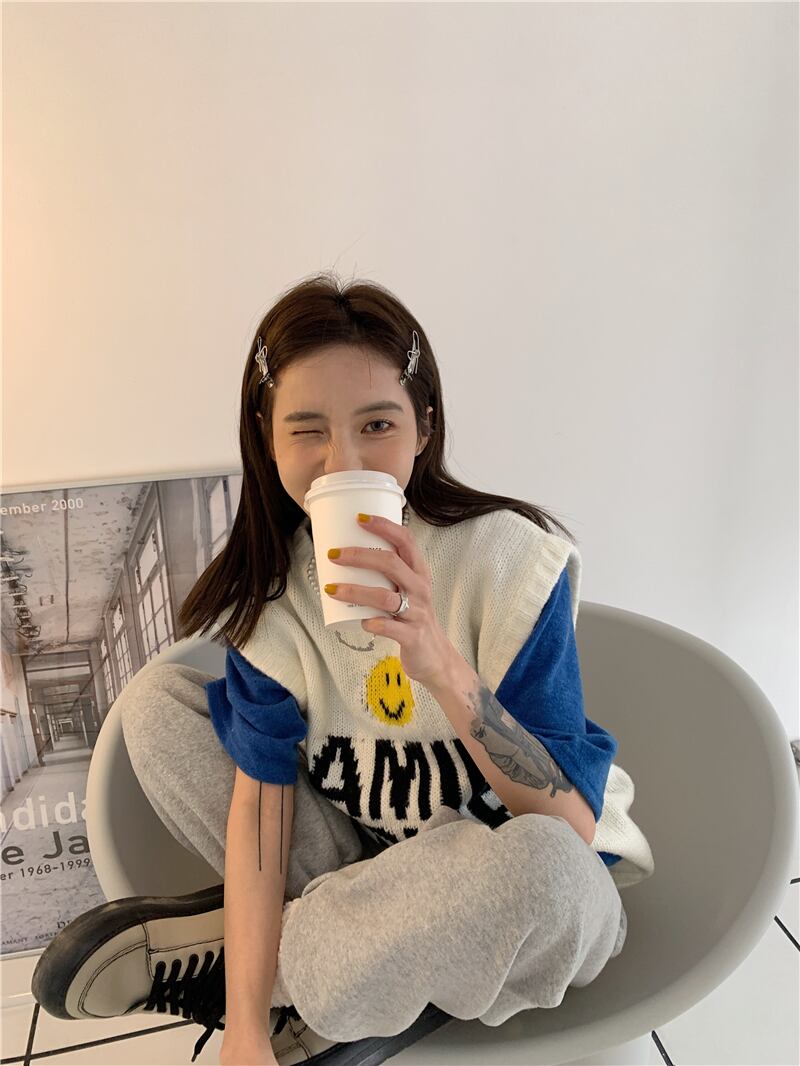 ルーズラウンドネックニットセーター ノースリーブトップス コート Oネック 韓国婦人50008426791