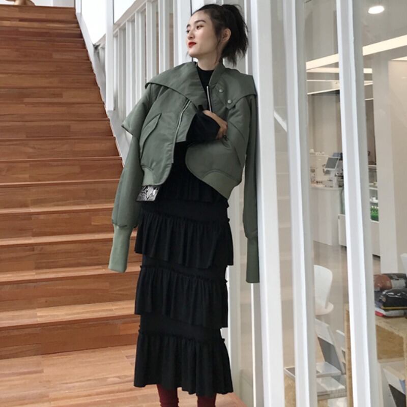 スプリングブラックロングドレス ウェストスカート 春物 韓国婦人4072979504