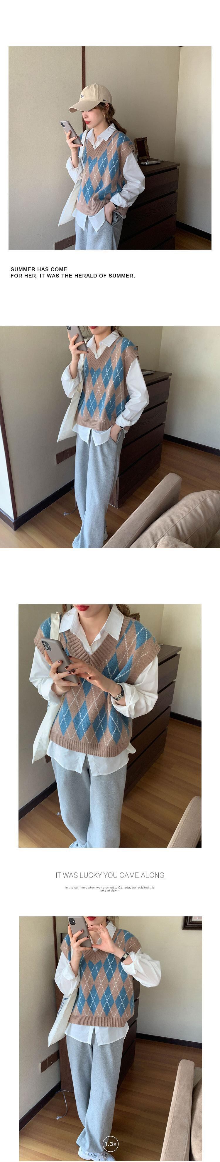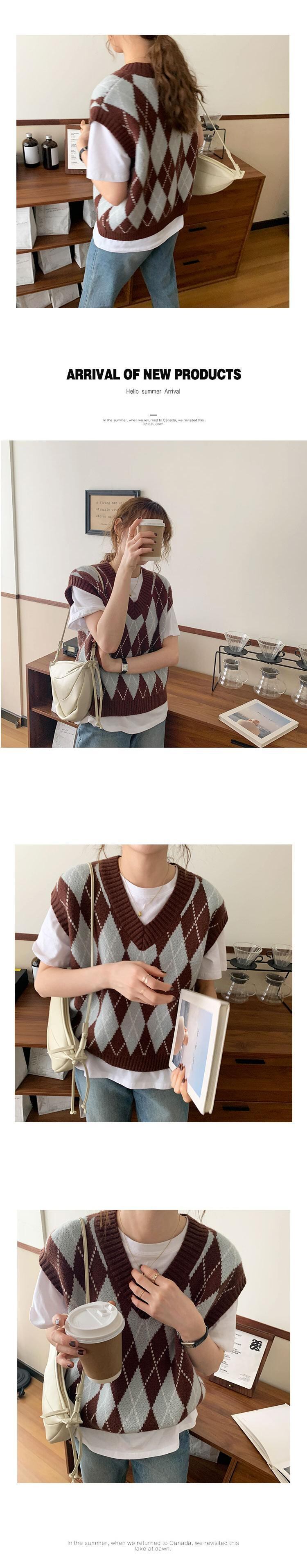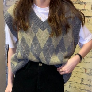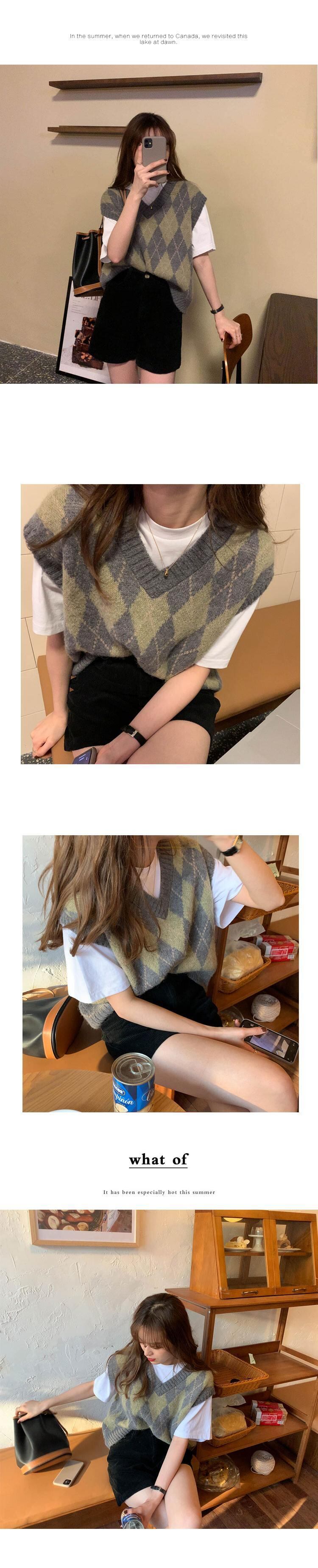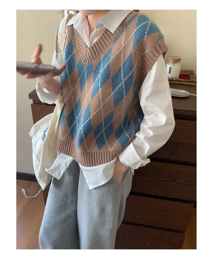 スタンダードVネックニットスプリングショートセーター ルーズトップス レトロ 春物 韓国婦人93034620992