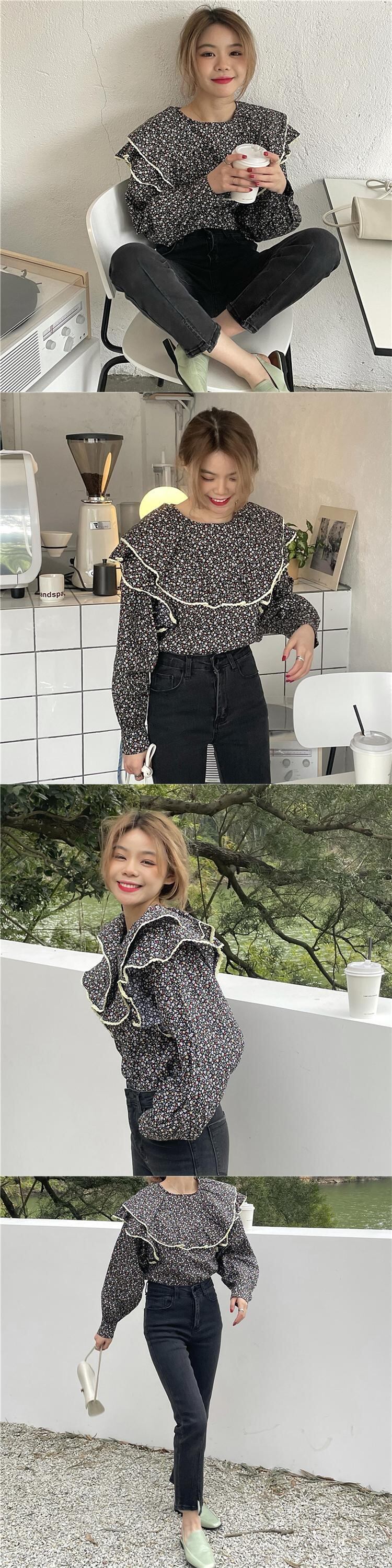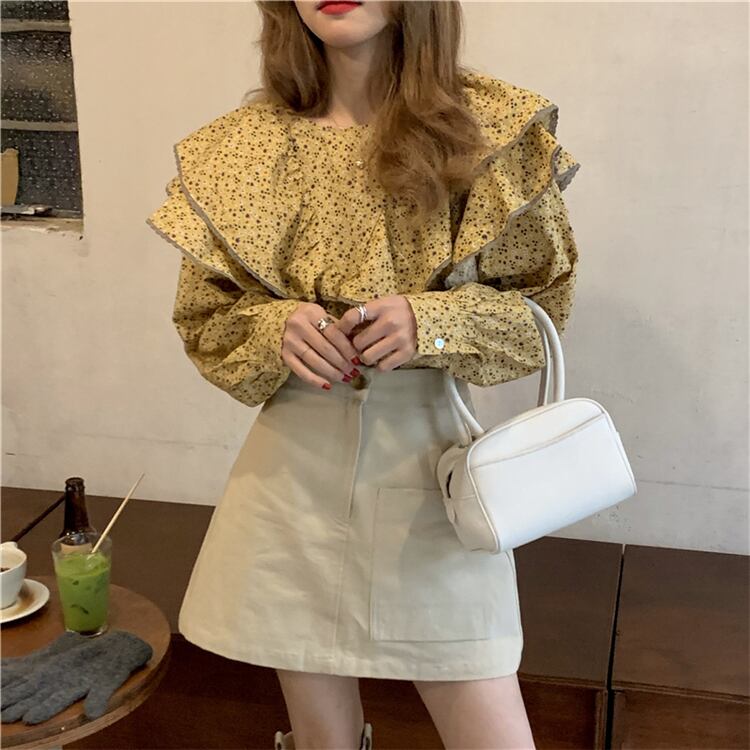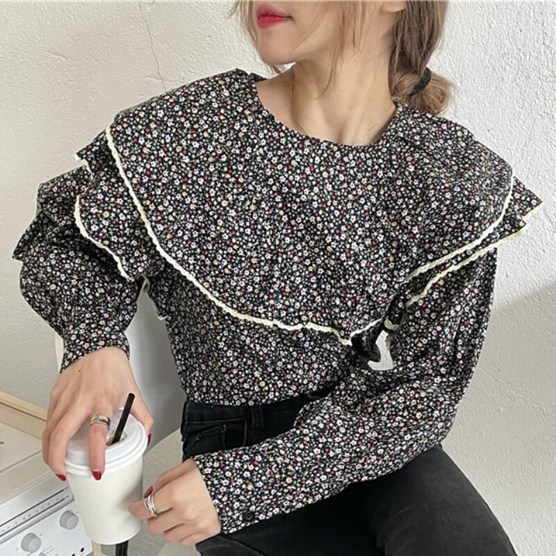 フローラルシャツ スプリングオータムスタイルスタンダード ロング レトロ 春物 秋物 花柄 韓国婦人42187687845