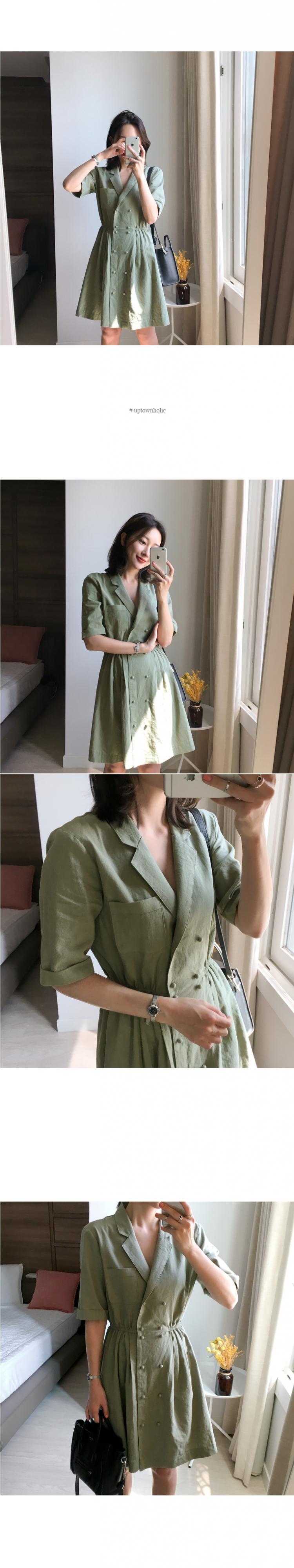 ダブルブレストカラードレス 薄手 韓国婦人39913560304
