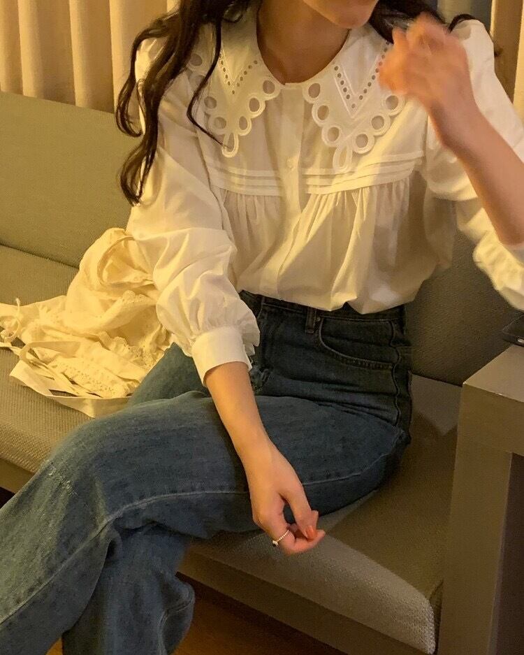 スプリングレースシャツ トップス ロング 春物 韓国婦人93044693681