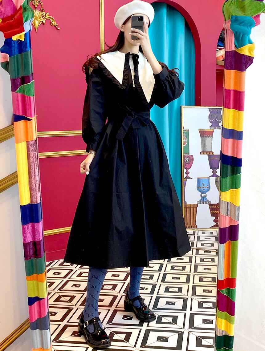 スタンダードアシンメトリーウェストロングドレス レディース レトロ 韓国婦人60946067173